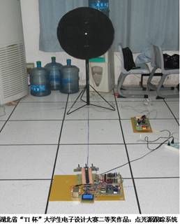 作品介绍:本作品以TI的MSO430F449单片机为核心,设计并制作一个能够检测并指示点光源位置的光源跟踪系统。该系统通过使用三个光敏器件,经放大后,由A/D转换器处理,再将处理后的数据两两比较,从而检测出光照强度最大的那个光敏器件,即可判断光源位置。在点光源(单只1W白光LED)处,利用功率晶体管TIP41A驱动LED,可使点光源的电流能够在一定范围内调节。通过单片机控制,由步进电机带动激光笔转动,使激光笔能连续跟踪指向LED点光源。 |