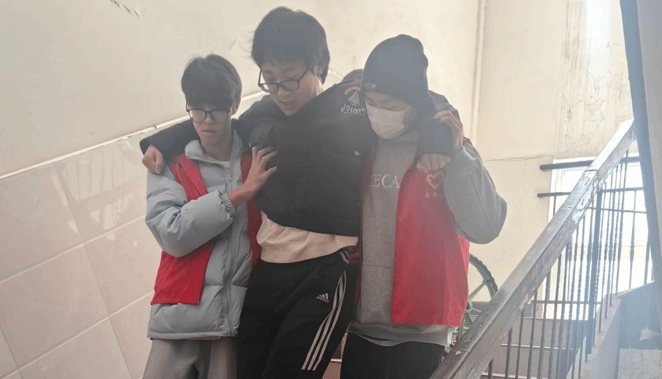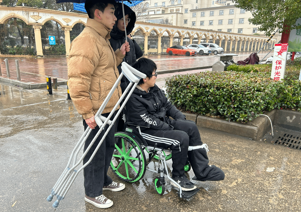 轮椅上的男孩是我院的一名学生,临近期末周时由于腿部受伤,不便前往考场参加期末考试,在我们得知这位同学的身体状况不佳后,立刻深入了解到该学生的具体需求和困难,并第一时间在我们党支部组织内成立起了一个专门的帮扶小组,并开会对于帮扶计划的细节进行讨论做出优化,确定好了帮扶的方案,这一次的帮扶小组成立由OK138太阳集团学生第一党支部牵头成立,支部内的每一位成员都表示要用实际行动之中贴心的照顾和无微不至的关心来让这位同学感受到真情的传递。