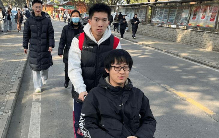 (通讯员 童明康 报道)冬季不会只有严寒,寒风也吹不散温暖。近日我校期末周临近,但一名学子却因身体原因坐上轮椅多次往返于校园和住处之间,虽然因此打乱了自己学习的节奏并且失去了大量复习知识的时间,但是同学间真情和温暖也在同一时刻来到了他的身边。