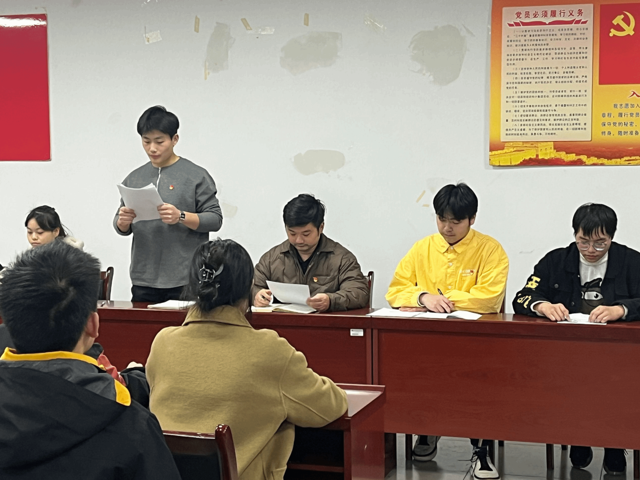 会议伊始,支部副书记王杰同志强调会议纪律和本次会议的主要内容,强调了党组织发展工作的严谨性和重要性,第一项由预备党员宣读自己的《转正申请书》。预备党员们反思了个人的行为与思想,剖析自身存在的不足,并展示了改正的意志与策略;同时,他们也表达了对党的渴望,期望能够为党的事务贡献自己的力量,为共产主义事业不懈奋斗,展现出向正式党员标准看齐的坚定决心。