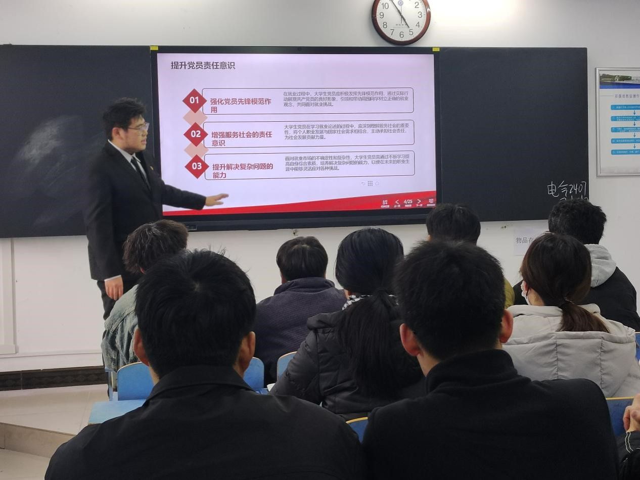随后,党员们围绕“如何将个人职业规划与国家发展相结合”、“如何在就业中发挥党员的先锋模范作用”等议题展开了热烈讨论。大家纷纷表示,要将学习成果转化为实际行动,不仅要提升自身的就业能力,还要帮助其他同学解决就业中遇到的问题,共同面对就业市场的挑战。