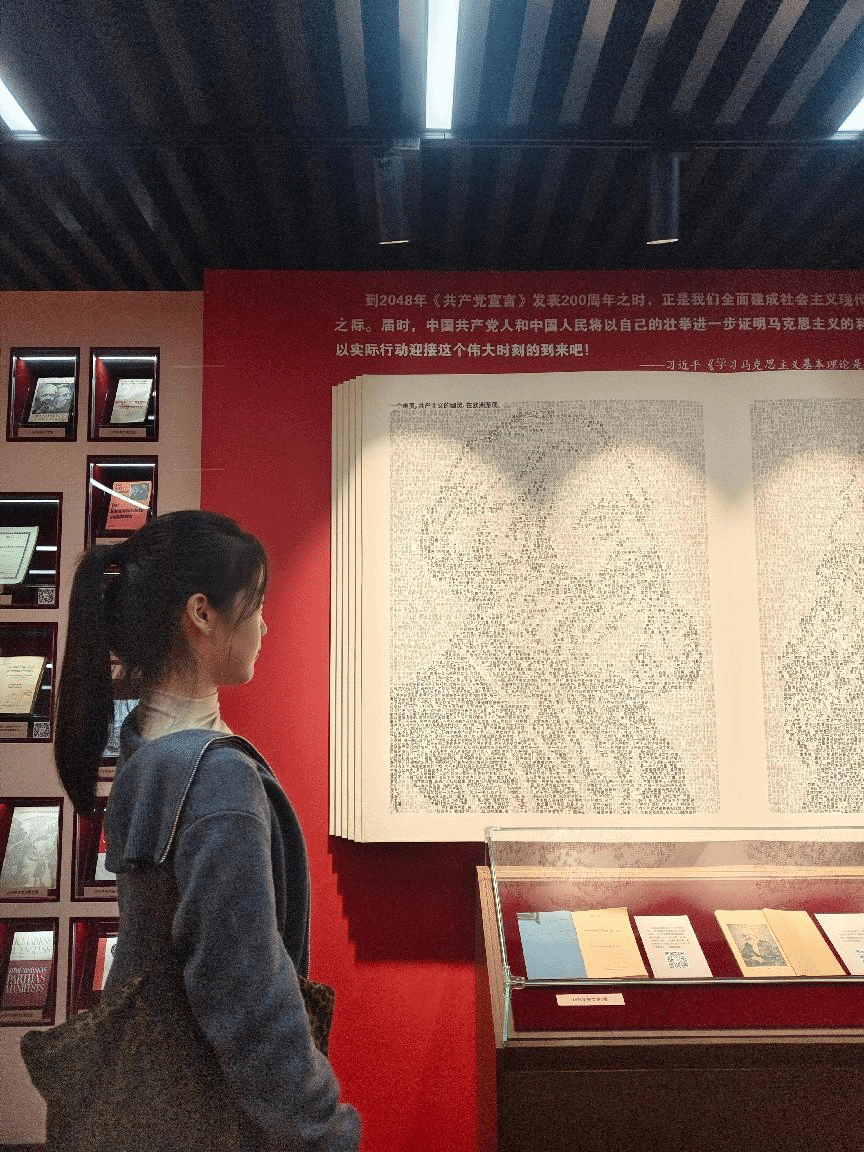 在华中师范大学马克思主义学院的“信仰之光——马克思主义文献典藏展”现场,OK138太阳集团学生第一、第三和第四党支部学员整齐列队,在专业讲解引导下系统参观四大主题展区。在“真理力量 薪火相传”展区,学员认真聆听马克思主义理论体系的形成脉络与发展历程;在“手稿藏书 经久弥珍”展区,众人驻足于《资本论》原始手稿等珍本文献前,深入品读经典著作的思想内涵;在“经典巨著 思想丰碑”展区,多种语言版本的《共产党宣言》及其传播历程引发学员深入思考;在“‘两个结合’最大法宝”展区,讲解员系统阐释马克思主义中国化时代化的理论创新与实践路径。展区共展出400余件珍贵文献与历史照片,辅以多媒体互动设备,生动呈现马克思主义在世界范围的传播与发展。学员们全程专注聆听,不时交流感悟,展现出严谨的学风与扎实的理论兴趣。