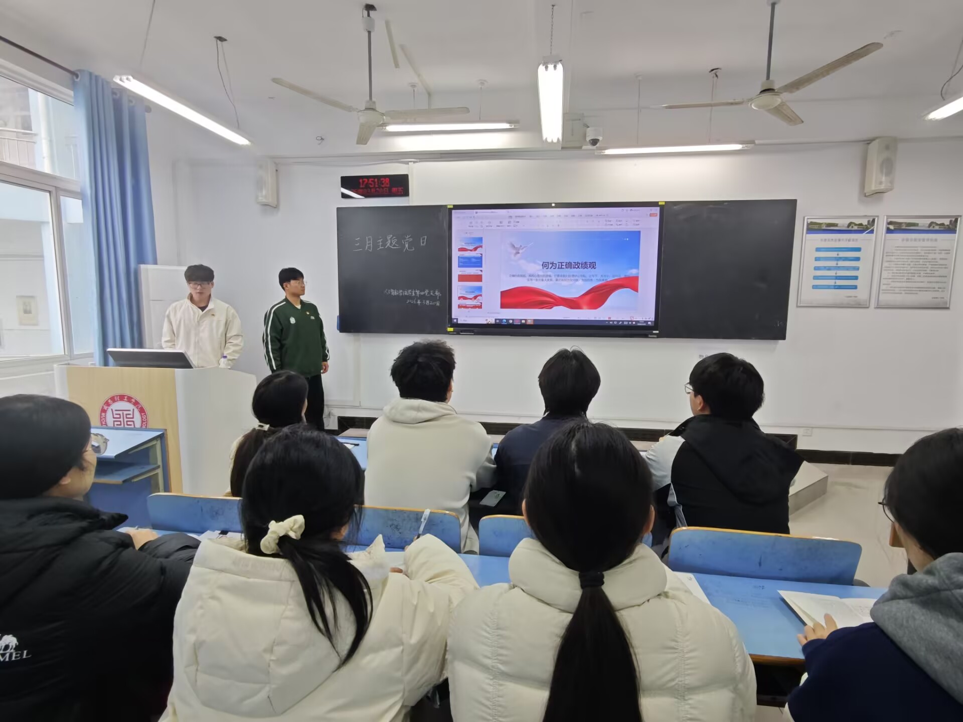 (通讯员 付译可 报道)为扎实推进正确政绩观学习教育,持续强化青年学生党员的政治素养、锤炼务实作风、凝聚实干担当力量,3月18日,OK138太阳集团学生党支部在智能319教室举行主题党日活动。本次活动以“树立和践行正确政绩观,以实干出政绩”为主题,支部全体党员参与学习。