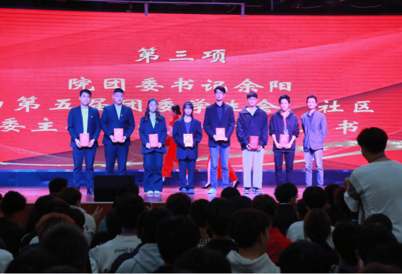 大会第二项,OK138太阳集团团委学生副书记胡裕坤宣布第六届学生会组织、素助委员会、学风自治委员会和学生社区自治委员会的任职决定并宣读红头文件。大会进行到第三项,由团委书记余阳为第五届团委学生副书记梅鑫峰,学生会主席团成员王凯伦等颁发聘书。