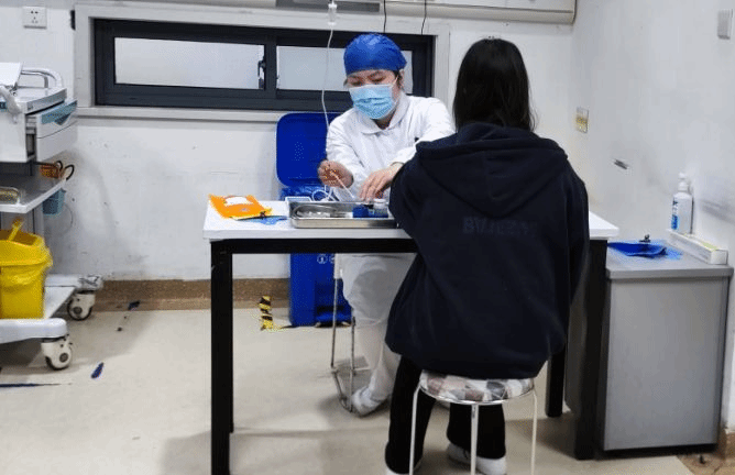 随后,平老师撑着伞扶着小飞上了车,前往江夏人民医院。到医院后,平老师帮助小飞挂号,陪着看医生和检查,在等待结果的过程中,平老师让小飞坐着休息,自己则站在检验科窗口等着出结果。拿到检查结果后,平老师带着小飞看医生、输液,全程不停歇,小飞在忍着病痛的同时为平老师的“奔波”感动不已。