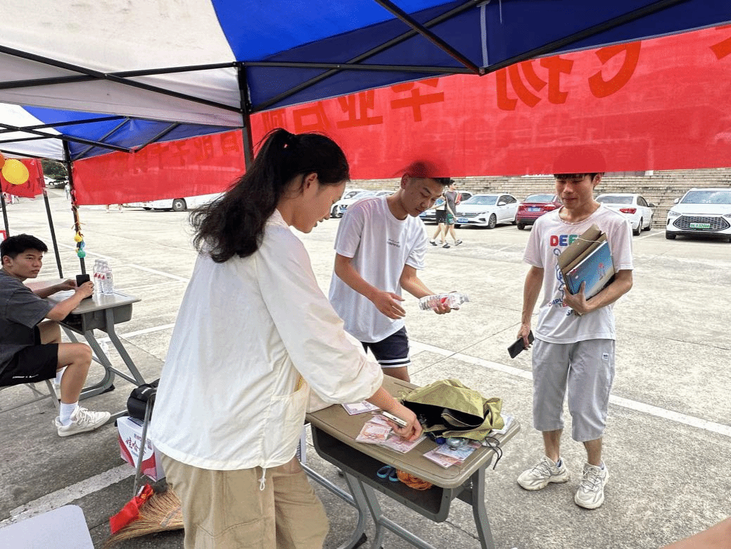 晨曦刚刚拉开了帷幕,各学生团队及学院志愿者便早早的前往了现场布置场地。每当有毕业生路过,志愿者们都会贴心的递上一瓶饮用水,并为毕业生们搬送行李,为毕业生的离校工作增添了许多方便。