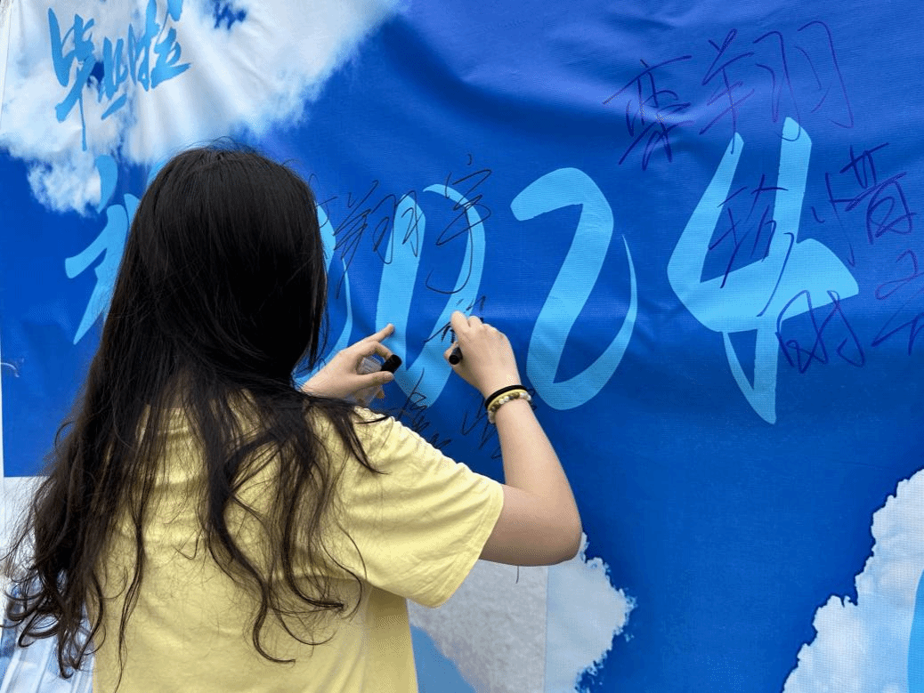随后,毕业生们纷纷在毕业纪念墙上留下对母校的寄语并合影留念。即将离开自己朝夕相处的同学和拼搏奋斗了四年的大学校园,同学们都互相畅谈自己大学四年的生活、学习的感受,并相互祝福,祝愿彼此前程似锦,祝愿学校发展越来越好。在同学们签好名字后,志愿者们也为毕业生们送上了精美的小礼物,礼物并不贵重,但却让毕业生充分感到了母校的关怀。同时,志愿者们以“当年你与我进校,如今我送你离开”为出发点,一同欢送毕业生们离校,并为学长学姐们运送行李。在各位志愿者的帮助与毕业生的配合下,毕业生文明离校的各项工作井然有序。