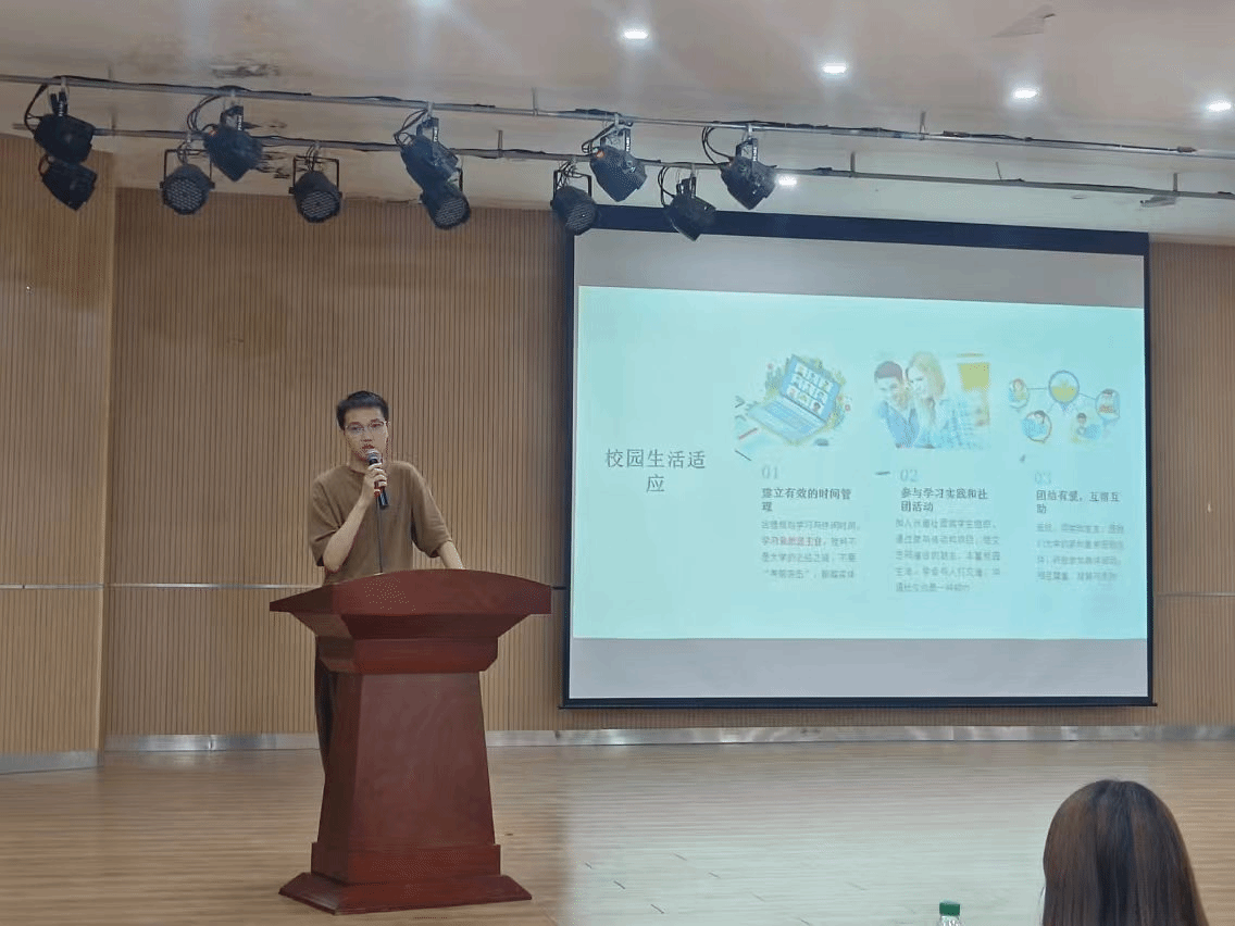伊始,主讲人易润以建立有效热的时间管理,参加学习实践和社团活动,和同窗团结友参与校园生活三个方面为主题,讲解了新生在校期间面临的问题。希望通过本次优秀毕业校友报告会来传授在校经验,为新生们提供更加明确的职业发展方向和目标。