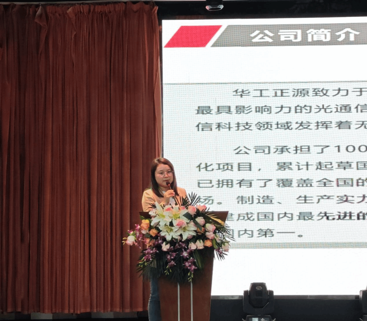 随后,中科国创、武汉华工正源等企业代表人介绍公司背景、薪资及岗位要求。他们表示将全力支持毕业生实习工作,为毕业生提供优质的实习环境和丰富的实践机会,致力于高素质人才的培养。台下同学们积极参与、踊跃提问,整个会场内响应热烈。