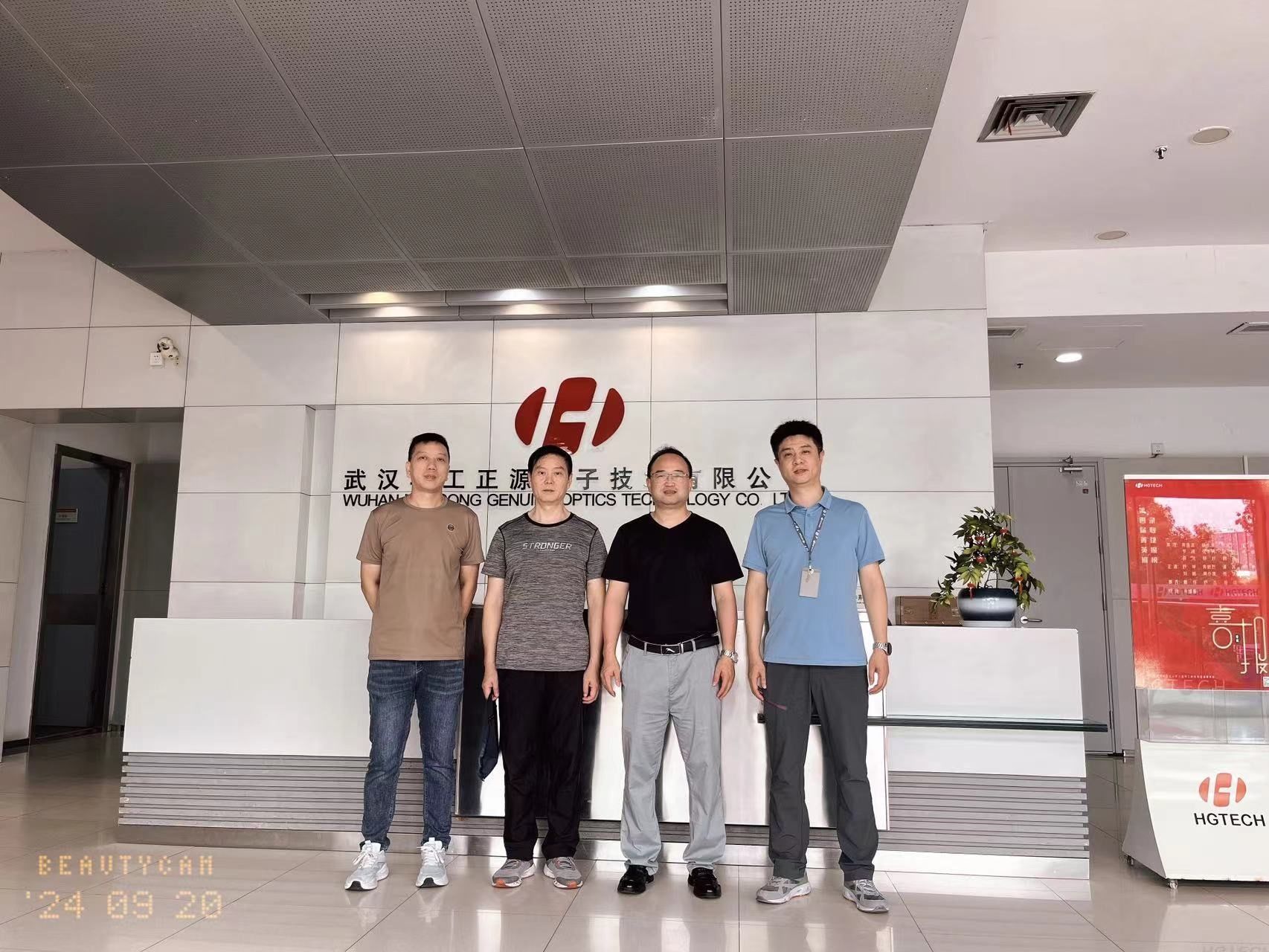 在武汉华工正源光子技术有限公司熊文总经理的带领下,廖徐斌教授一行参观了企业工作区、了解了企业的文化及用人需求。熊文总经理表示,现有员工800余人,厂房面积12000平方米,已建成国内最先进的批量有源器件和光模块生产线,在此基础上开发、生产具有自主知识产权的各种新型光电器件和模块 。随着业务的拓展,目前对人才的需求量还是很大的。