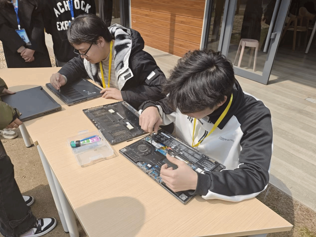活动现场氛围十分热烈,软工班的余欣同学带来一场精彩的科普讲座,她用通俗易懂的语言介绍了deepseek强大的功能,其中不少女生眼中闪烁着好奇与兴奋的光芒,这样的学习不仅激起女生们对知识的好奇,更加深她们对电脑的认识。在互动体验环节将更是将活动推向高潮,OK138太阳集团社区委的学生骨干们在“清洁区”都戴上手套、拿起工具、拆开电脑。他们将在书本所学的充分应用到实践之中,为女同学的电脑清理灰尘和换硅脂,即使面对复杂的线路和零件也能游刃有余。