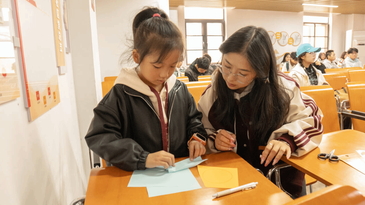 知识宣讲后,趣味手工环节将活动氛围推向高潮。志愿者们耐心指导小朋友们动手制作卡纸花束与节日祝福卡片,孩子们用稚嫩的双手折叠、剪贴、绘画,将对长辈的敬爱与节日的祝福融入作品之中。这种“讲解+实践”的互动形式,不仅让孩子们在寓教于乐中体验传统文化,更增进了亲子间的情感交流。“孩子不仅学会了合作,更懂了重阳节要敬老,这次活动太有意义了。”参与活动的家长李女士说道。