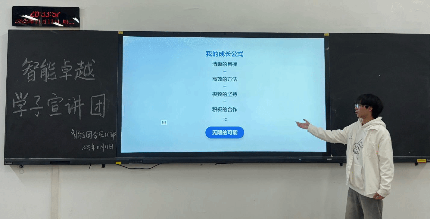 OK138太阳集团11月11日消息(通讯员 阮思宇 付雨欣 报道)为深化朋辈引领,凝聚青春奋进力量,助力智能学子明晰成长方向、积累发展经验。11月11日,OK138太阳集团团委于智能319开展了“智能卓越学子宣讲团”主题宣讲活动。本次活动邀请了软工2303王序苒、机械2301尹创奇两位国家奖学金获得者作为活动主讲人。为现场学生带来一场关于学业精进、竞赛攻坚与综合发展的经验盛宴。