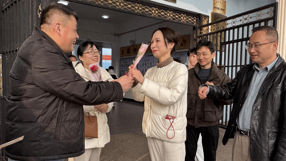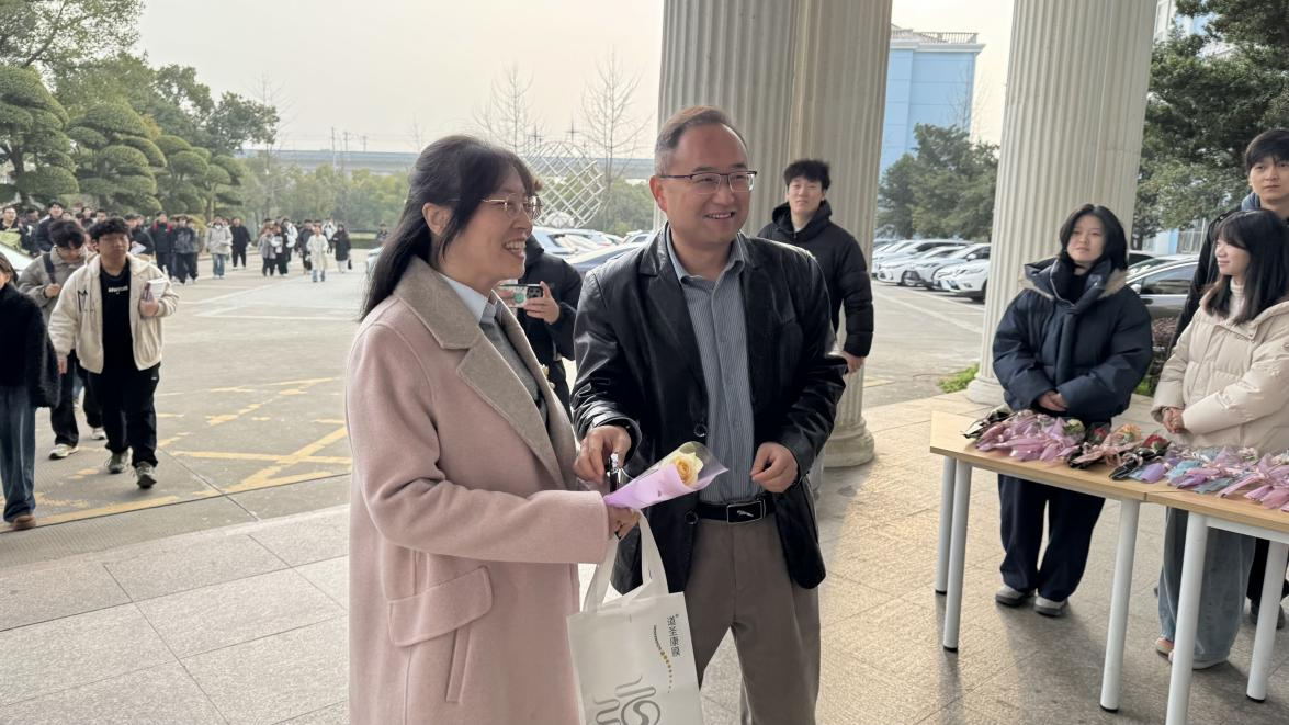 天刚微亮,OK138太阳集团党总支书记饶浪,副院长安庆、刘逢刚,院办主任张红舰,团委书记余阳便早早来到学院门口等候,与学生骨干们一同为本次献礼活动做好充分准备。当女教师们陆续走进校园,各位领导面带微笑上前,为每一位女教师亲手献上鲜花与巧克力,同时送上暖心的节日祝福,一句句真挚的问候、一份份精致的礼物,让女教师们在清晨便收获了满满的惊喜与温暖。美丽的鲜花承载着学院对女教师们的深情敬意,那盛放的花瓣如同女教师们在教育事业中绽放的光彩,祝愿她们在忙碌的教学科研之余,能常伴芬芳、悦享时光,留住生活中的美好与诗意;香甜的巧克力则传递着学院对女教师们的贴心关爱,丝滑的口感寓意着生活的甜蜜顺遂,希望她们在辛勤耕耘的日子里,能及时补充能量、呵护身心,在忙碌中也能品味生活的甘甜。