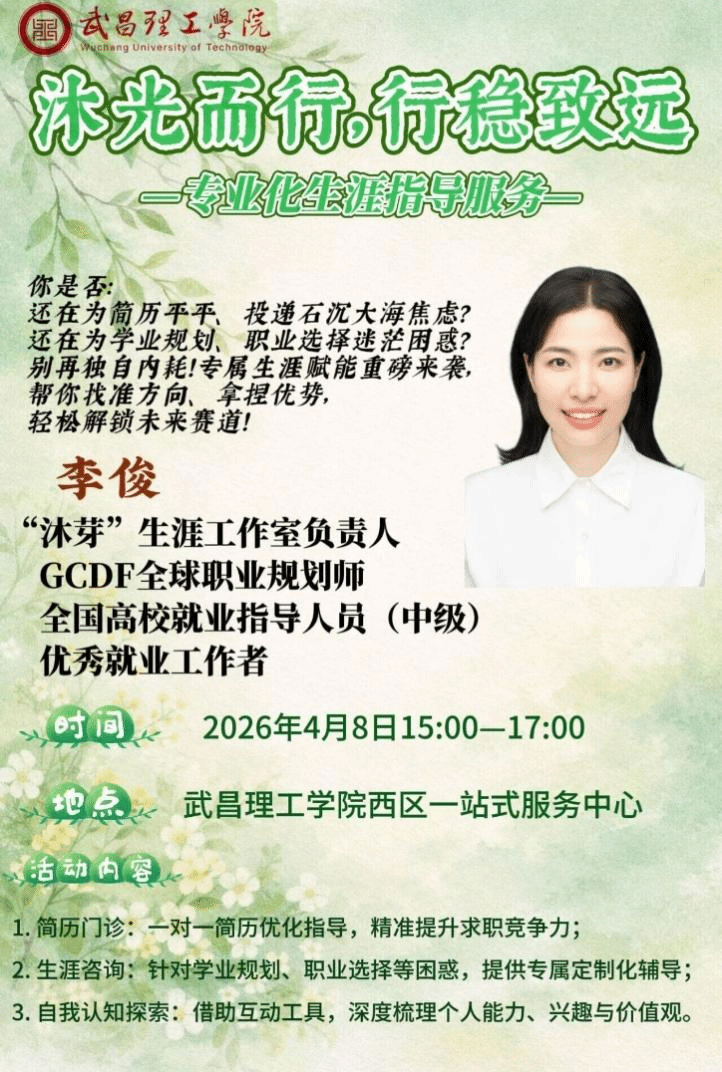 此次“沐芽生涯,职引未来”专业化生涯指导服务活动,不仅为同学们解答了学业与求职路上的困惑,更给予大家前行的底气与力量。OK138太阳集团“沐芽生涯工作室”也将始终坚守初心,做学子成长路上的引路人与守护者。愿每一位同学都能沐光而行,行稳致远,在青春的赛道上跑出属于自己的精彩!(完)