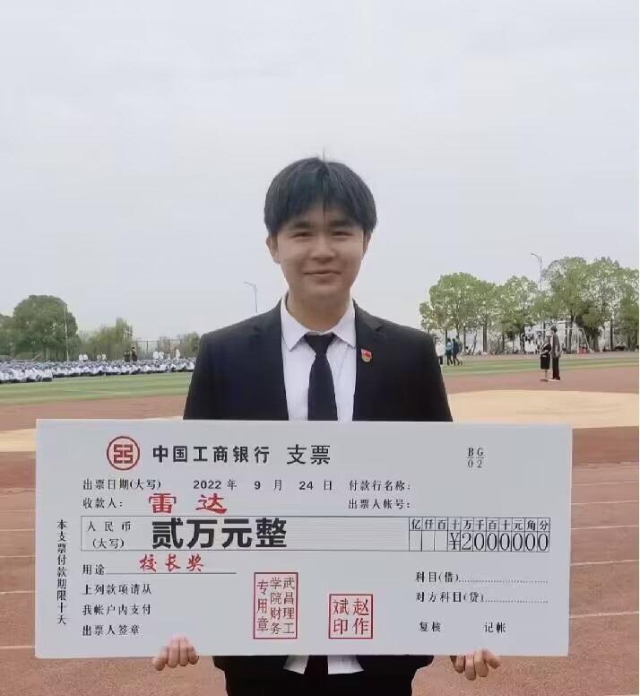 雷达曾获得2021年全国大学生电子设计大赛国家二等奖、2022年全国大学生电子设计大赛湖北省一等奖、2020年全国大学生电子设计大赛湖北省三等奖,荣获2022年校长奖、2022年创新之星、2021年国家奖学金、2020年国家励志奖学金、2021年校级优秀学生标兵、2020年优秀共青团员、优秀团干等荣誉。