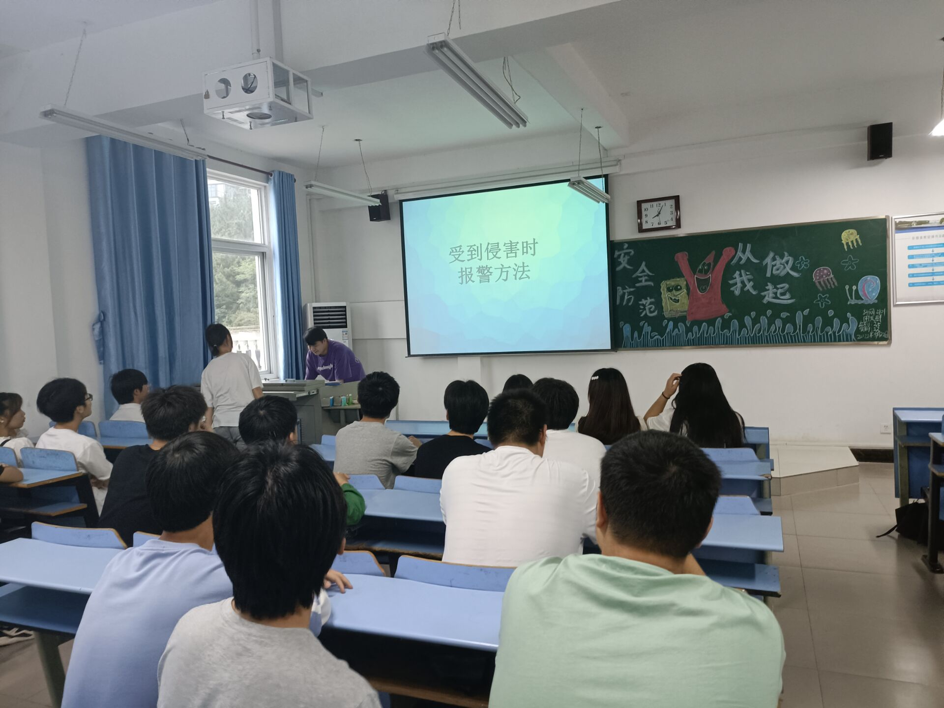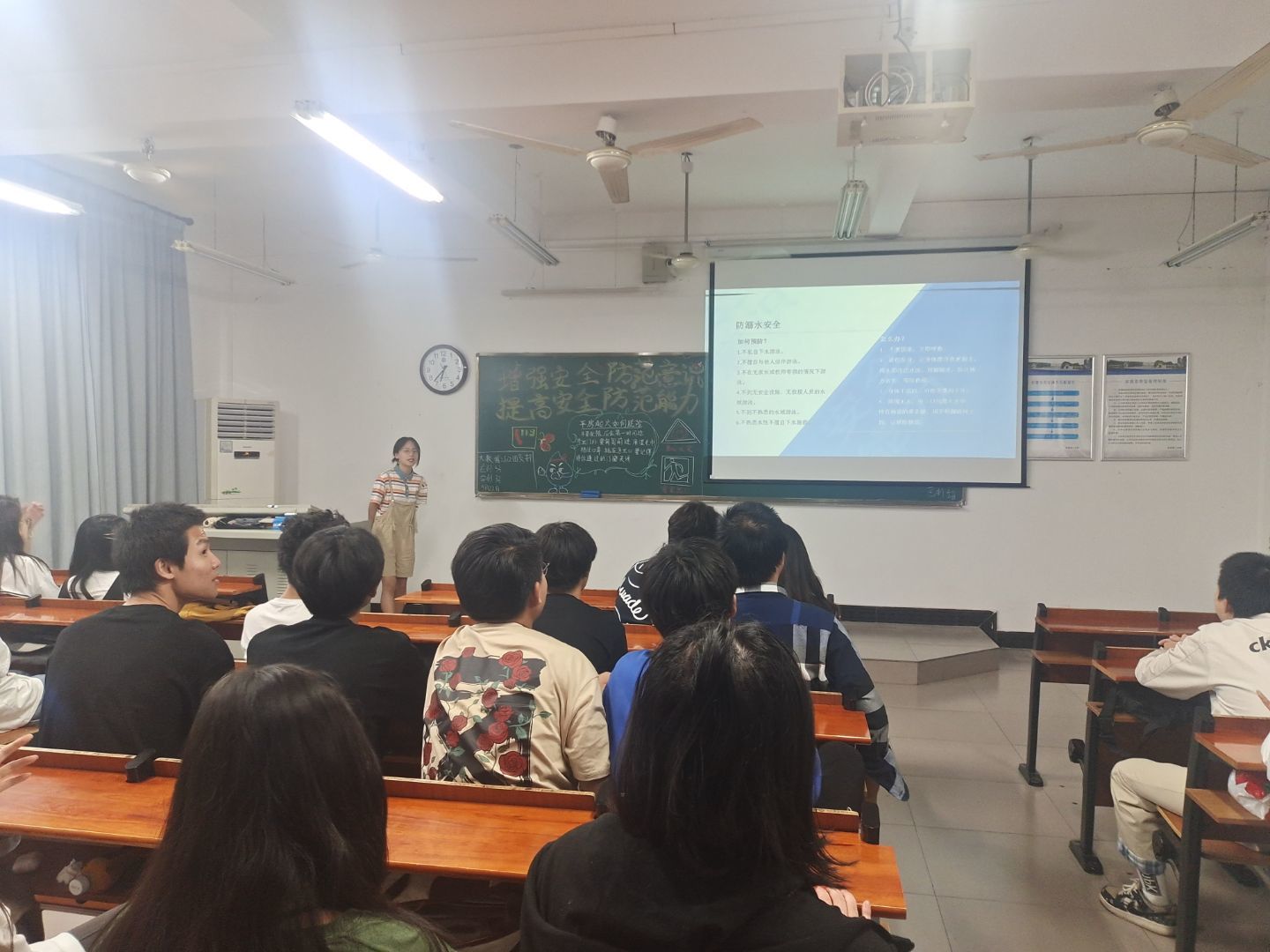 据悉,此次班会由各班团支书主持召开。班会前,团支书带领组织委员、宣传委员及生实委员提前到达教室,打开班会PPT、绘制班会板报及打扫班会教室卫生。班会伊始,各班团支书带领同学们了解安全方面的知识,并列举了多个典型的安全事故来加强同学们的安全意识。随后,团支书带领同学们对生活常见安全问题进行讨论,同学们积极参与讨论并举手发言。最后,各团支书进行总结道:“当今社会越发重视安全问题,在生活中各种安全事故也时常发生。因此,学生应掌握的七大方面安全防范分别为防溺水安全、交通安全、居家安全、外出游玩安全、防火安全、饮食安全和网络安全。我们作为当代青年,应加强防范意识并大力宣传安全常识。”至此,本次班会落下帷幕。