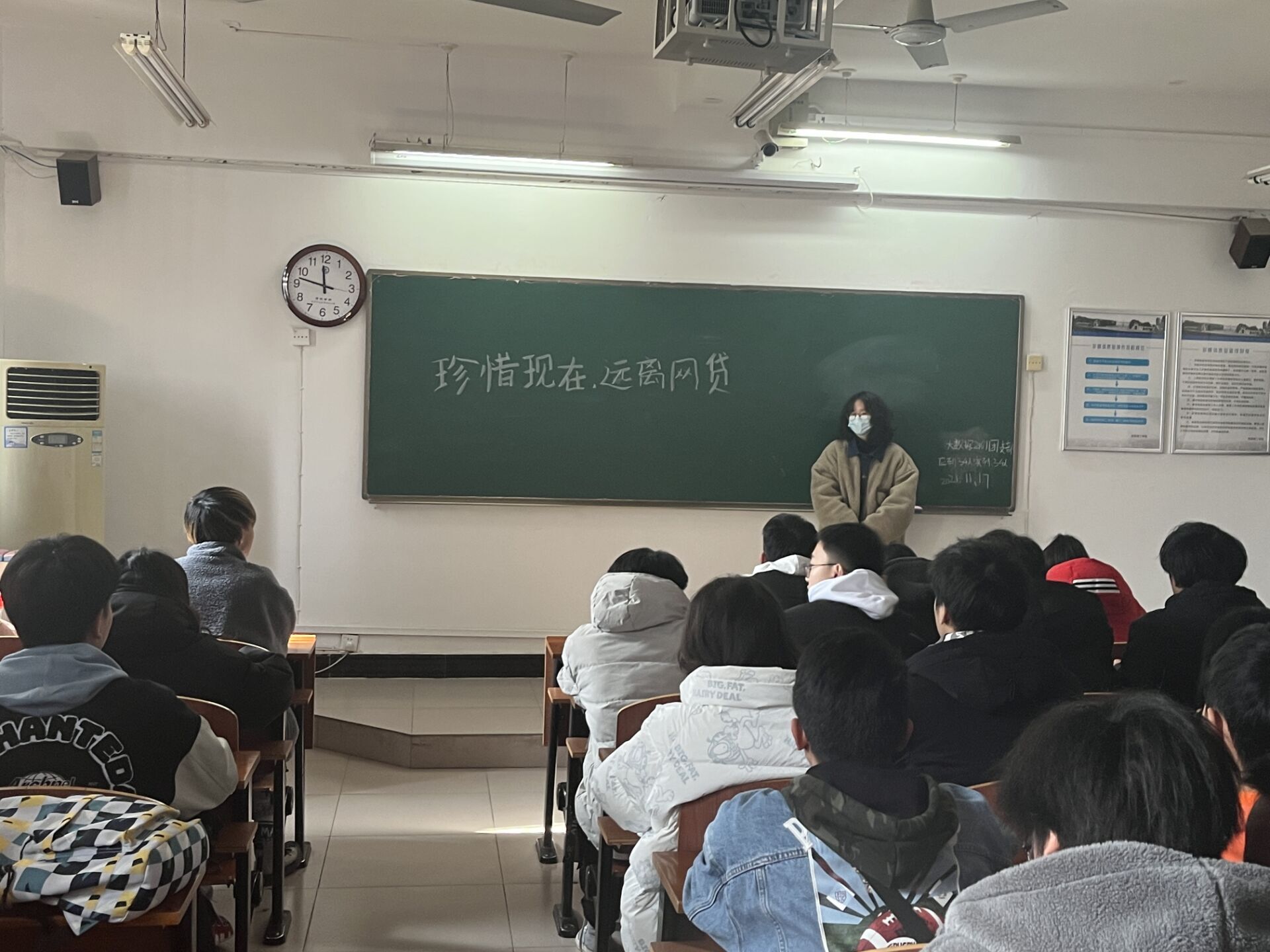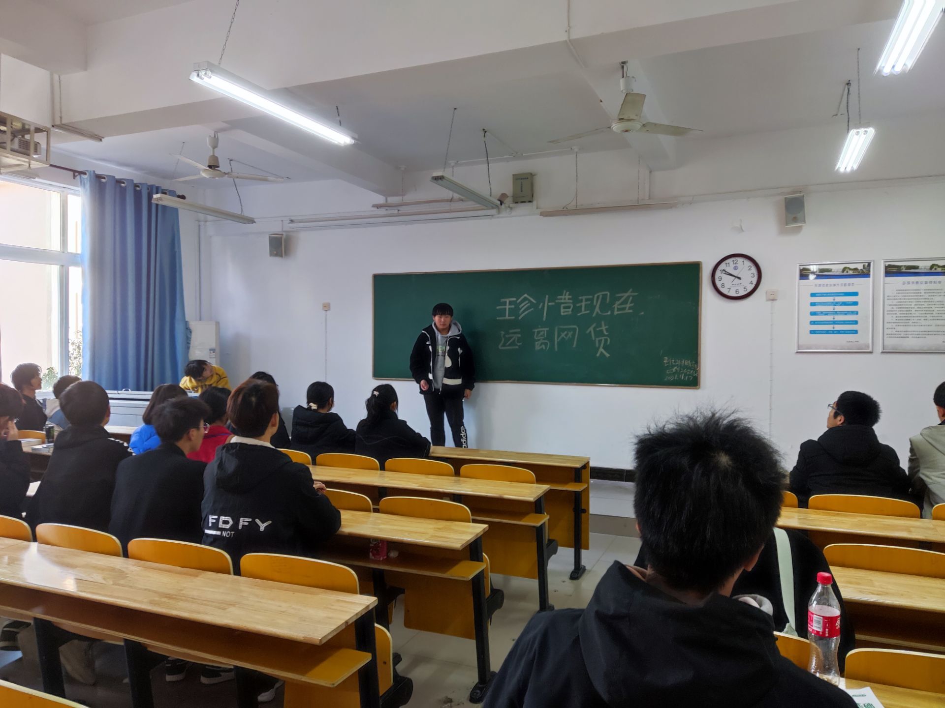 OK138太阳集团11月8日消息 (通讯员 熊玮鹏 报道)为提高学生理性消费意识,自觉抵制不正当消费和网络赌博及网络游戏的诱惑,端正做人态度,拒绝校园网贷,规划好大学生活。OK138太阳集团于11月7日晚在各班开展“珍惜现在,远离网贷”主题班会,参加此次班会的有智能全体学生。