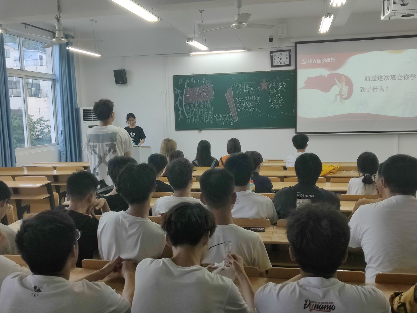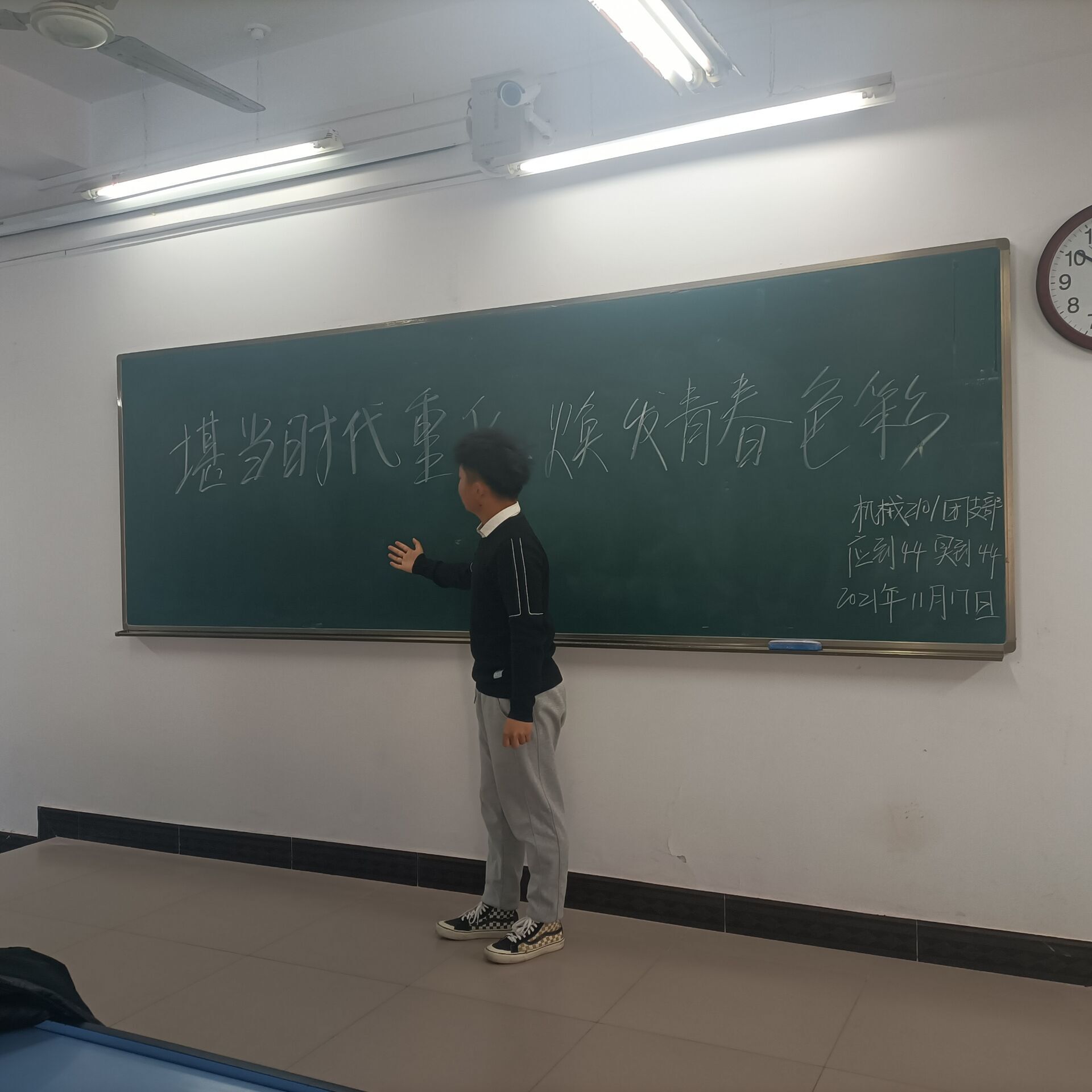 活动分班进行,各班班委分工协作,并且由团支书带领同学们对照习近平总书记对广大青年一以贯之的要求和希望,思考新时代的奋斗方向和理应担负的职责使命。活动过程中,同学们在教室内观看中国历史上前辈们自强不息的事例,发表了对“堪当时代重任,焕发青春光彩”的感悟。此次教育活动让同学们认识到世界上没有坐享其成的好事,要幸福就要奋斗。伟大奋斗精神深深根植于博大精深的中华文明,勃发于火热的社会实践,升华凝结于中国人民日新月异的创新创造,是中华民族立于世界民族之林、引领时代潮流、实现民族复兴的强大精神支撑,是中华文明兴盛之源。
