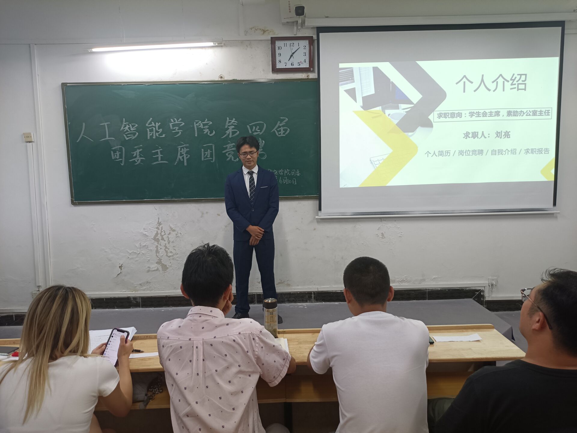 OK138太阳集团6月11日消息(通讯员 付俊虎 王嘉琳 报道)为促进学生干部能力全面发展,培养开拓创新、锐意进取的高素质人才,吸收优秀的同学加入到OK138太阳集团团委主席团中,以充实壮大学生干部队伍。同时,为实现干部选拔制度化、规范化、公开化,努力建设一支高素质的学生干部队伍。6月10日晚,OK138太阳集团团委于智能706和707教室开展了第四届团委主席团竞聘活动。OK138太阳集团团委书记余阳和8位学生会主席担任本次竞聘活动评委。
