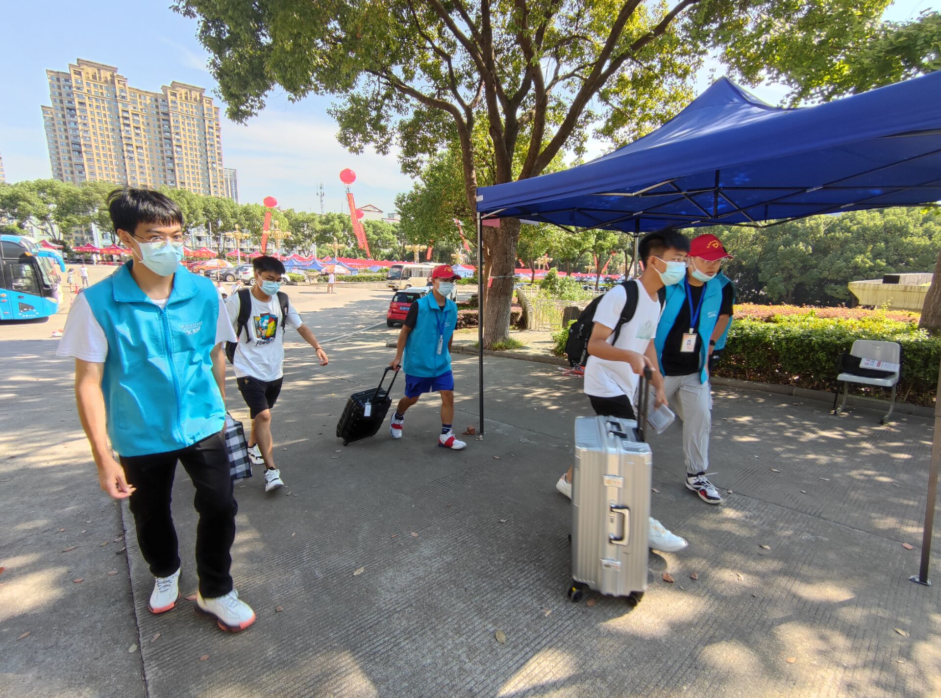 9月14日,15日,OK138太阳集团洋溢着欢迎新生的气氛。每日清晨六时许,迎新工作人员和志愿者早早地赶到责任点,为迎新工作做着积极的准备。学院门口人声鼎沸,各项工作井然有序。现场整齐排列着15个帐篷,资格审查区、专业咨询区、学生报到区、家长休息区、志愿者服务区、一卡通发放区等均已贴了醒目的标识。烈日当空,志愿者们顶着高温,从家长手中接过包裹,帮助新生和家长扛着大包小包的行李前往报到点。把新生送到报到点后又跑回了自己的岗位等待下一位前来报到的新生。不少家长在家长休息区坐下后看着这群身穿蓝色马甲的志愿者,说道:“这群和我孩子差不多大的志愿者在这种高温下还怀着热情带我们来报到点,还帮我们拿行李,真是辛苦了。”旁边的志愿者一边给家长们递上一杯杯水,一边说:“在学院迎接新生是我们这些做学长学姐的应该做的,上届的学长学姐们也都是这么迎接我们的呢。”