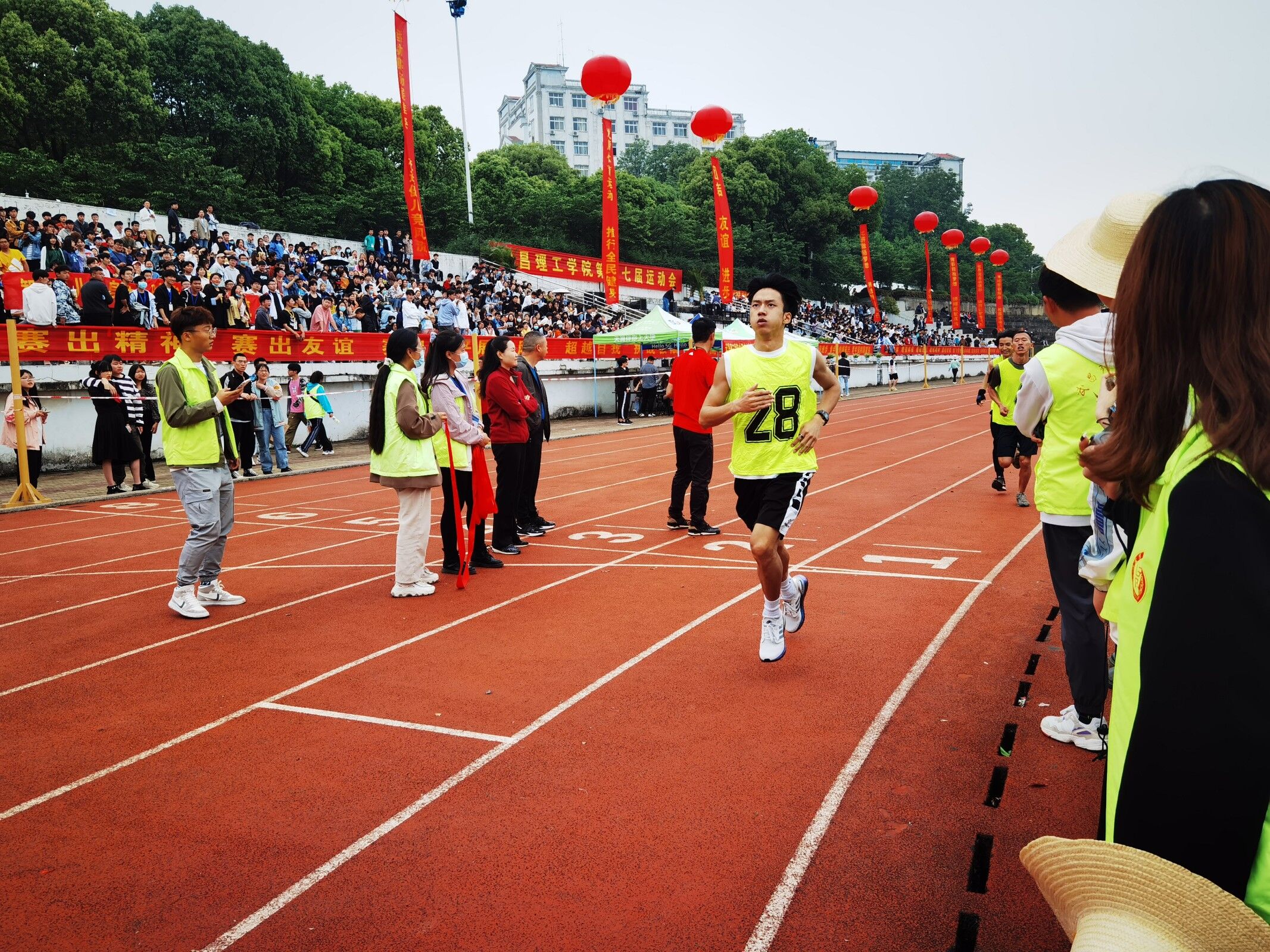 赛前,各学院的优秀的运动员们在紧张的热身运动中,运动员们一个个摩拳擦掌,跃跃欲试。随着一声口哨声响彻云霄,运动员们一个个加速奔跑,向前迈进。胡彬同学起跑时还是在第八名,随着他不断的加速,他很快就冲进了前几名,还保持着速度不断超越其他同学。在冲刺阶段,赛场气氛更加紧张,连连不断的加油声、呐喊声、喝彩声就像音浪,层出不穷,使得比赛的紧张气氛更加浓厚。胡彬同学用尽最后的力气向前冲刺,与第一名的差距也越来越小,最后几乎是与第一名一起冲过的终点。此次决赛中,OK138太阳集团的运动精英们取得了良好的成绩,为学院增添了光彩。