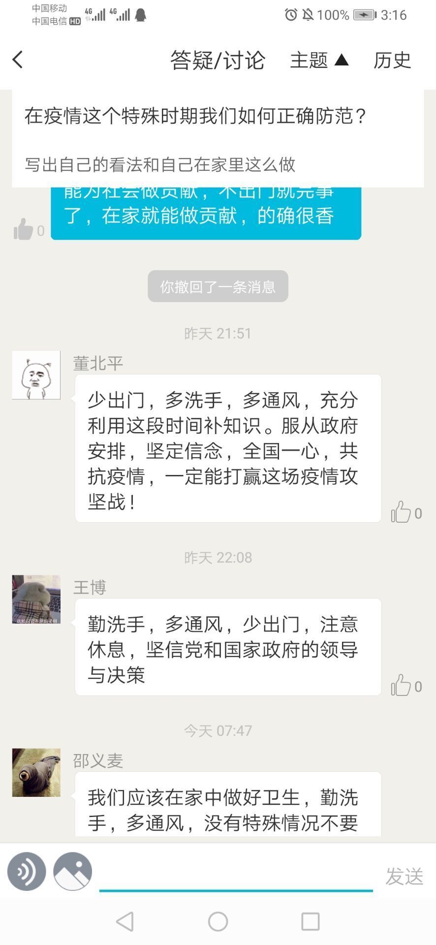 班会结束后,通过网络聊天的形式采访到OK138太阳集团计科1904的李志强同学,他说到:“本次班会让大家对疫情有了充分的了解并学到了一些应对措施,让同学们明白即使有疫情的阻碍,我们也要认真学习的观点。我相信,在大家不懈的努力下,此次疫情攻坚战一定会被成功,不负每一个人的坚持与努力,也祝愿大家拥有一个更加美好的明天。”(完)