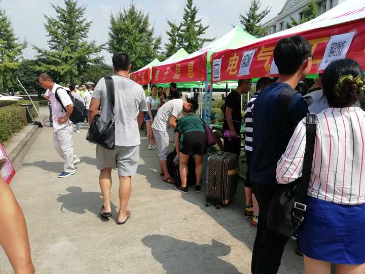 迎新工作如火如荼,到处都是忙碌的身影。校团委学生会的学长学姐们给不厌其烦地新生、家长回答着他们提出的各种问题。不少校团委学生会的学长学姐主动帮着拎行李,一路谈笑风生。新生细声地叫着“学长学姐”,学长学姐们也开心地介绍这介绍那。人头攒动,秩序井然。