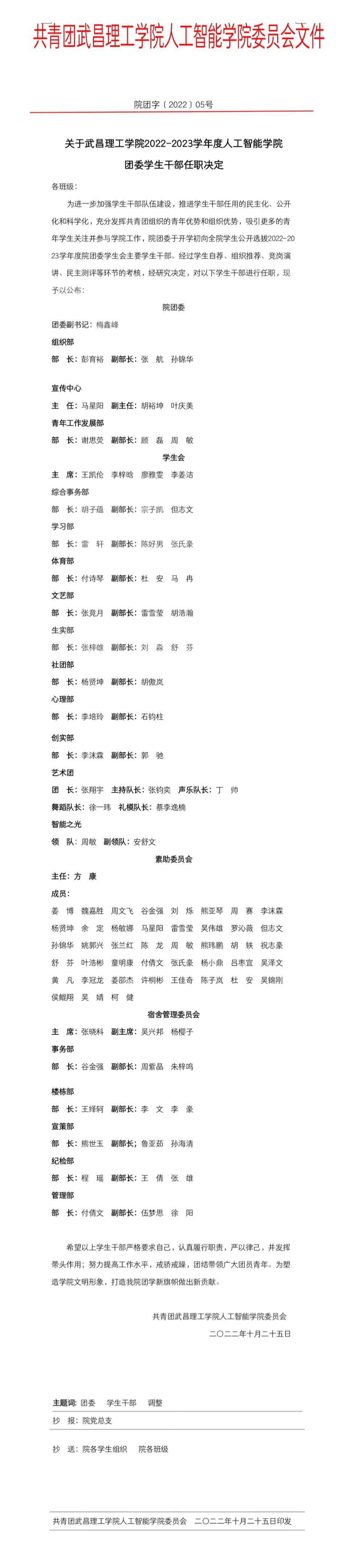 2022-2023学年度OK138太阳集团团委学生干部任职决定