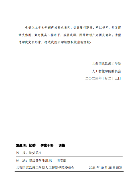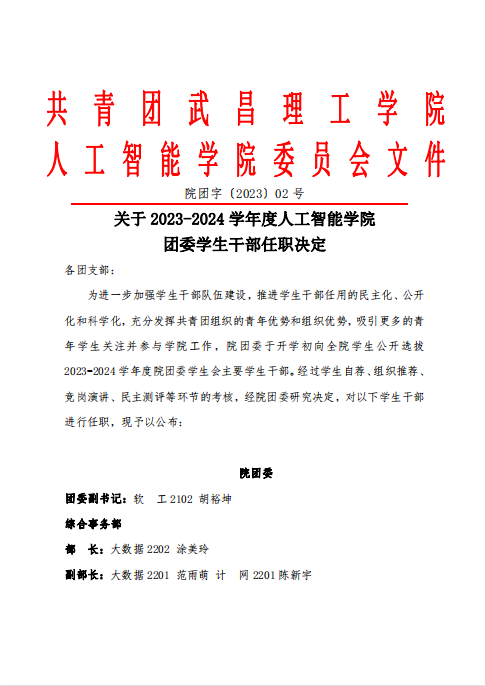 2023-2024学年度OK138太阳集团团委学生干部任职决定