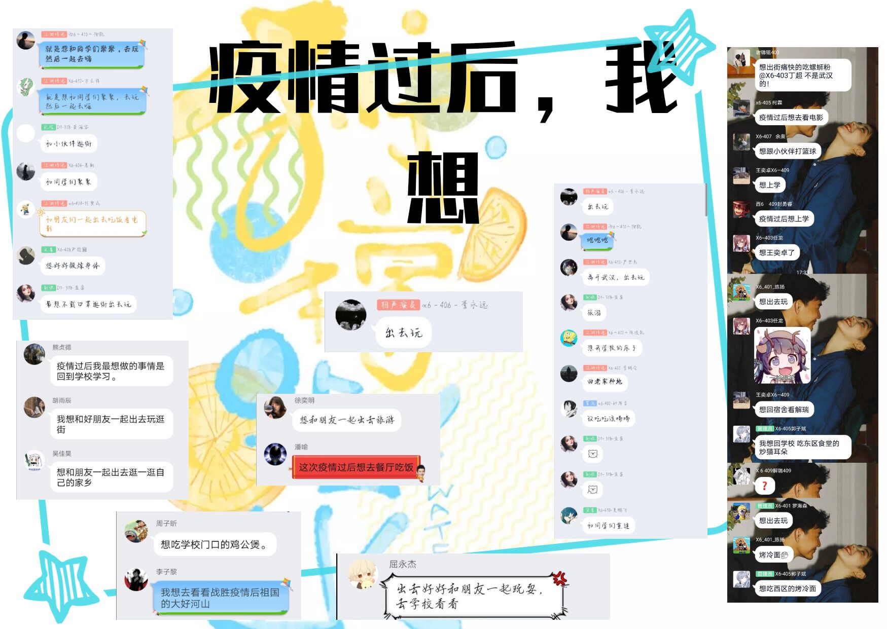 班会结束后,记者随机对几位同学又进行关于“疫情之后最想干的事情”相关问题进行了采访,其中,电气1903班的甘晰玥同学说:“这次疫情来的猝不及防,形势严峻时,所有商铺全部关门,每个人都是居家闭门不出,整个城市瞬间安静了下来。随着疫情一步步的好转,复工复学在望,我十分高兴,所以疫情结束后,我最想做的事情是摘掉口罩,画个美美的妆,穿上心仪的衣服,和朋友们去游乐场放松压抑的心情,去电影院,去小吃街……”。另外几个同学有人说,疫情结束,想吃甜点,想去电影院,也有人说,春暖花开时一切都会好起来的,疫情结束后最想做的一件事见你们,还有人说,去公园草地上打滚!呼吸新鲜空气,锻炼身体去看看没有看过的地方做原来想做不敢做的事情,不想让自己有遗憾原来生命如此脆弱。