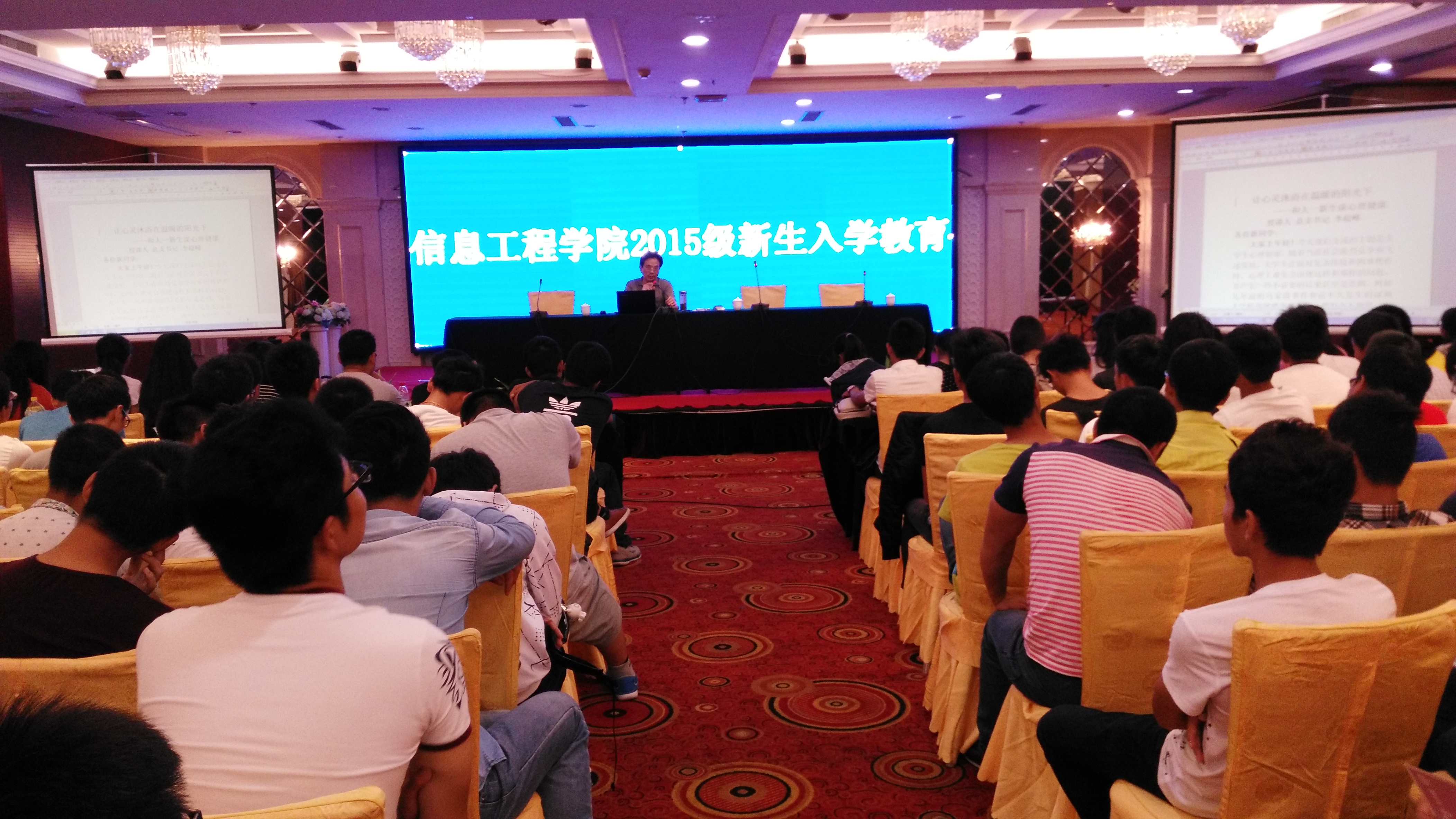 (本报讯:信工学院 胡瑞年)2015年9月30日上午8:00,学校汤逊湖宾馆二楼报告厅,信息工程学院党总支李超峰书记,为信工学院2015级新生作了一场“关心大学生心理健康,培养高素质抢手人才”报告会。信工学院加强和改进思想政治教育,注重人文关怀和心灵疏导。报告会场秩序很好,同学们意识到“悦纳自我,做一个快乐健康的人”对大学生的成长和进步至关重要。