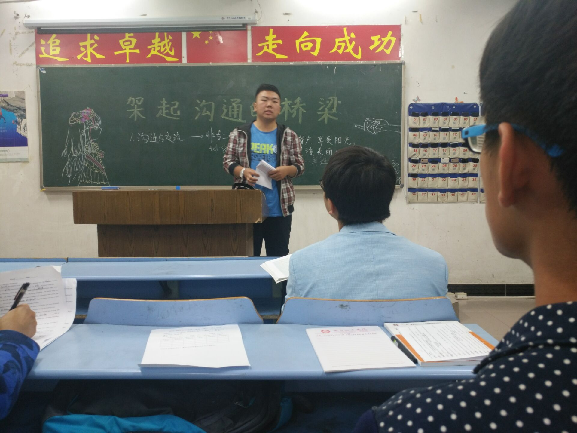 班会由心理委员刘海洋主持,他首先向大家介绍了人际沟通的相关概念和内容,特别强调了沟通的重要性。接着大家踊跃上台发言,讲述自己遇到的人际问题,分析原因,并提供建议。沟通是心与心的交流,有效的沟通可以缩短人与人之间的距离,可以使人充分发挥出能动性。而现在很多同学只顾着学习,却往往忽视沟通的重要性,缺乏有效的沟通方式,在与家长、老师、同学沟通过程中产生了各种各样的困惑。长期以往将直接导致他们形成交流沟通的障碍,影响着他们的身心健康以及个人的发展。这次开展的主题班会,让同学们认识到了沟通的重要性,并且学习传递与交流信息的多种方式与方法,学会有效的沟通,乐于沟通、善于沟通,感受有效沟通带给他们的快乐与喜悦。