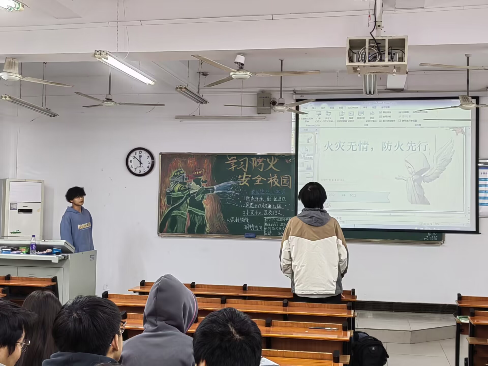 据悉,本次主题教育活动由各班团支书负责开展。活动正式开始后,主讲人首先向同学们阐述了“119”这一串数字的含义,普及了每年的11月9日是全国消防日。接着,主讲人又列出每年因火灾伤亡的人数和造成的财产损失的金额,用惨重的数据,告诫大家“火灾无情,防火先行”的重要性,敲醒了学生心中防火的警钟。随后,主讲人向大家介绍了3点关于在学校发生火灾时的注意事项:1.在火灾来临时,不能慌乱,要判断火势来源,采取相反逃跑方向;2.火灾发生时,逃离一定要有秩序,不要拥挤;3.在夜间发生时,应先叫醒熟睡的人,提醒其他人逃生。活动过程中,主讲人以小组讨论的方式让大家列出灭火器的具体种类,同学们积极参与讨论,发表个人意见。此次主题教育活动加深了同学们对灭火器的认识与消防觉悟,现场许多同学都纷纷表示:“自己对消防的认识还是有所欠缺,要继续加强对消防的学习。”
