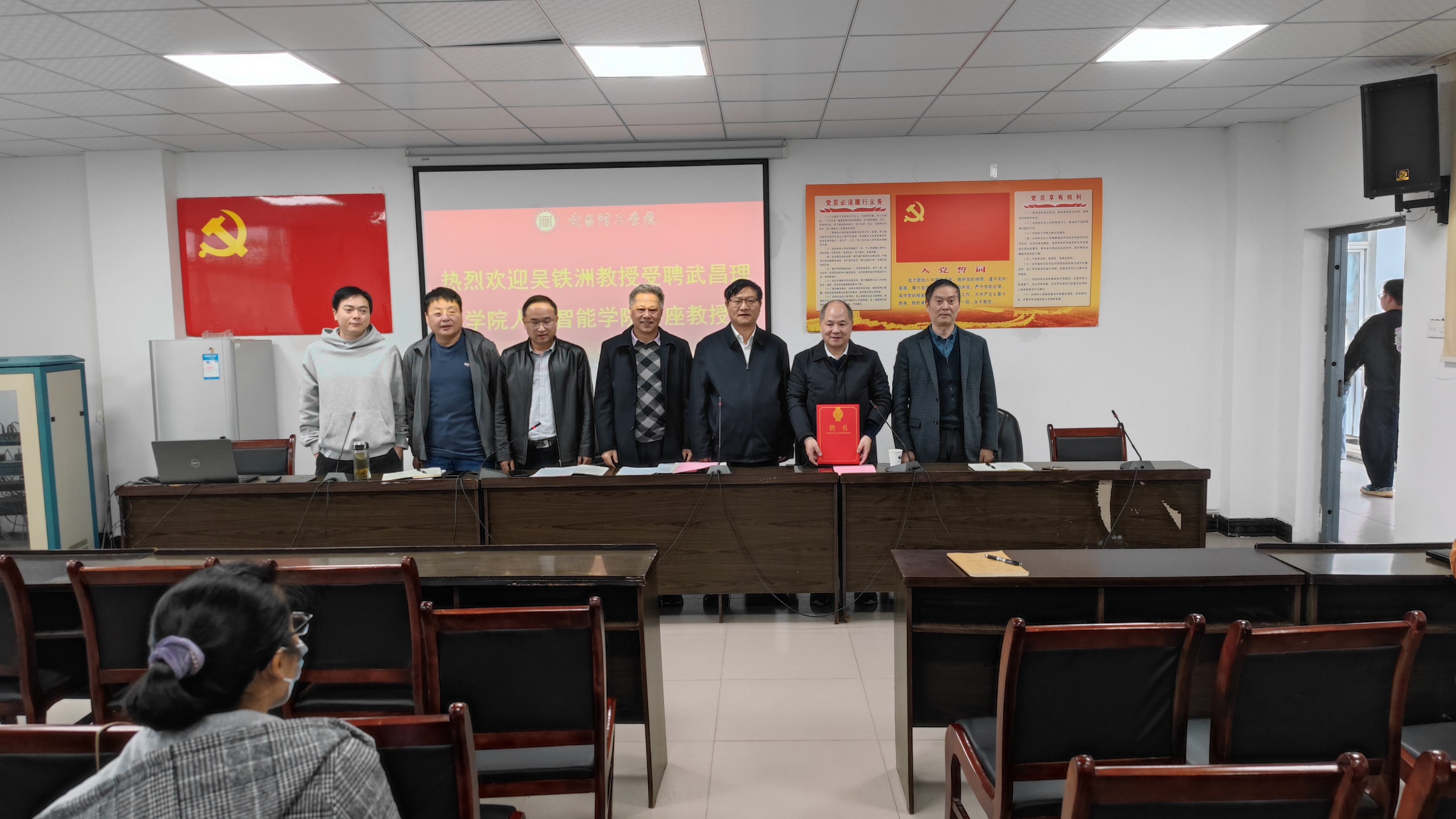 聘任仪式开始,席自强院长对吴铁洲教授作了介绍。吴铁洲,三级教授,博士,博士生导师。入选南京市“321”领军人才计划和湖北工业大学“南湖学者”学术带头人。2010年毕业于华中科技大学系统分析与集成专业,现任湖北工业大学电气与电子工程学院副院长,太阳能发电及储能运行控制重点实验室主任,太阳能高效利用湖北省协同创新中心常务副主任。主要研究方向是储能技术、光伏发电技术。主持完成国家自然科学基金项目2项,湖北省科技创新重大专项1项,中央引导地方科技发展资金项目1项,湖北省科技创新基地(平台)专项2项。其他省部级项目10余项,发表论文60余篇,获湖北省科技进步二等奖、三等奖各一项,世界可持续能源学会创新奖1项,日内瓦国际发明金奖1项,其他奖项多项。