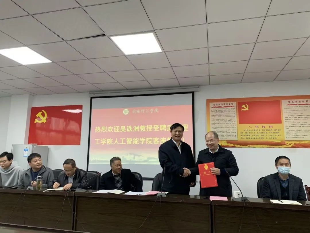 学校副校长崔海容教授向吴铁洲教授颁发了聘书。