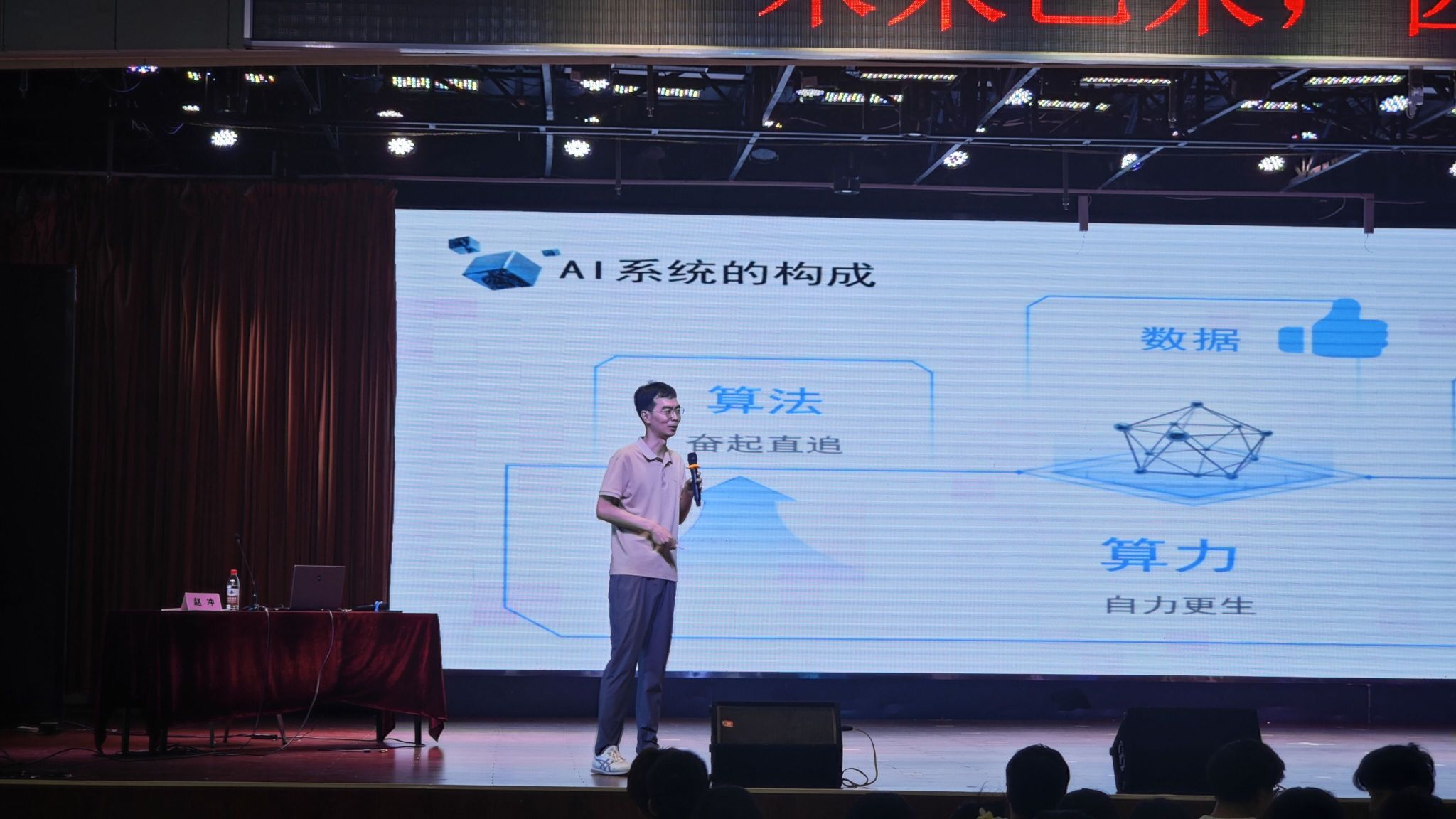 会议伊始,赵冲从腾讯与阿里双双发力AI,大力投入人工智能建设的案例入手,提出了技术革命已然来临的观点。随后,赵冲又阐述了AIGC的概念,即AI生成内容。他提出,AI会不断学习训练数据,而后将其不断转化为模型参数,最后输出数据,得到符合人们需要的结果。结合AIGC的发展,赵冲提出,AI技术未来将广泛应用于无人机、智能手机、家电以及汽车中去。基于AI技术的发展前景,赵冲认为,AI不会替代人类,但会使用AI的人会替代不会使用AI的人。因此他鼓励新时代的大学生们不断的学习新技术,跟紧时代的发展,提升自身能力,虚心若愚,求知若饥。