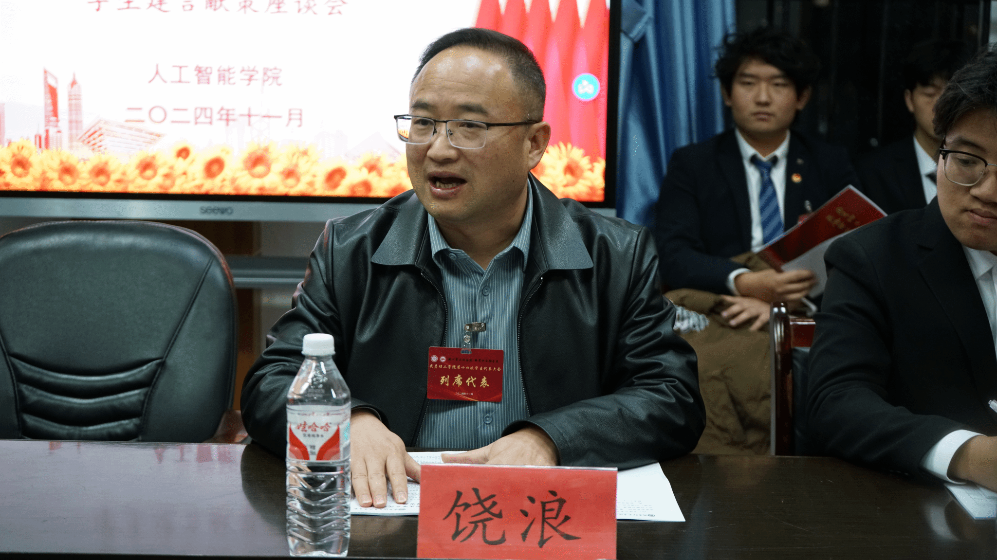会议伊始,党总支书记饶浪致辞,对各学生代表筹备会议流程、内容安排等工作的付出表示感谢,并对新一届学生骨干提出期望,他强调学生骨干要以身作则,端正思想,以高度的责任心对待每一项工作任务,切实发挥模范带头作用。同时,饶书记鼓励学生代表主动发现问题,勇于提出问题,通过深入的讨论交流,找到切实可行的解决方案,为学生组织建设和学院发展贡献智慧和力量。