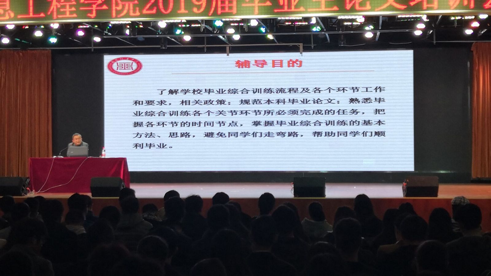 在会议的开始李副院长向同学们介绍了学校毕业综合训练流程及相关规定并说明了本科毕业综合训练的重要意义,随后讲解了本科毕业综合训练选题技巧同时又在现场进行了文献检索的教学和文献运用,在大会的最后李副院长详细的介绍了合格毕业论文的基本条件。