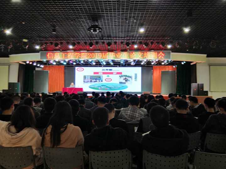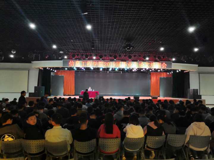 团委网11月8日消息(18级见习记者闫照恒 报道)11月8日傍晚17点整于大学生活动中心举行信息工程学院2019届毕业生论文培训会。参加本次大会的有信息工程学院副院长李强、2015级全体素导老师及2019届信息工程学院全体毕业生共计700余人。