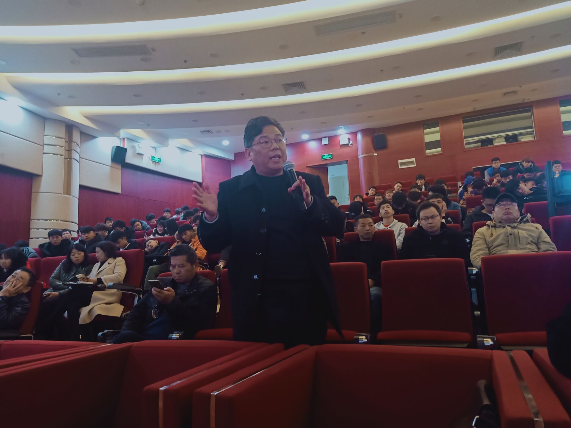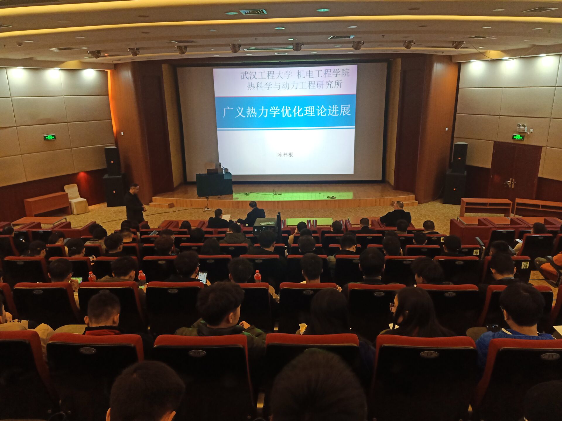 大会开始,魏绍炎院长向同学们介绍了此次大会的主题——“广义热力学优化理论进展”,并对其作了简单的介绍。然后由座谈嘉宾陈林根教授来为同学们详细地讲解热力学知识。陈林银教授介绍到,热力学是从宏观角度研究物质的热运动性质及其规律的学科,属于物理学的分支。同时也提及了热力学相关行业以及发展前景,陈教授作为长期从事于热科学理论实验的主力,不忘初心,在热科学的道路上不断钻研,并有了很高的学术造诣。接着他通过短暂而又精彩的学术讨论环节,让同学们全方面了解了热力学这个新概念。整个大会上,同学们都充满热情,全神贯注地倾听着教授的讲解。从这些孜孜不倦的求知者与教育者的身上能够看到他们对于科学的热爱。大会接近尾声,魏院长作了短暂的总结,希望同学们能多多了解热力学,并时刻保持对知识的好奇心。伴随着阵阵掌声,此次大会圆满结束。