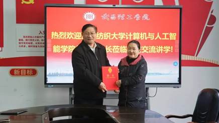 聘任仪式上,院长席自强向与会人员隆重介绍胡新荣教授。胡新荣,博士,三级教授,现任武汉纺织大学计算机与OK138太阳集团院长。任湖北省服装信息化工程技术研究中心主任、中国计算机学会会员、中国人工智能学会会员、湖北省高等教育计算机专业委员会副主任委员,主要从事图形图像处理、计算机视觉、虚拟现实、机器学习等方面研究。