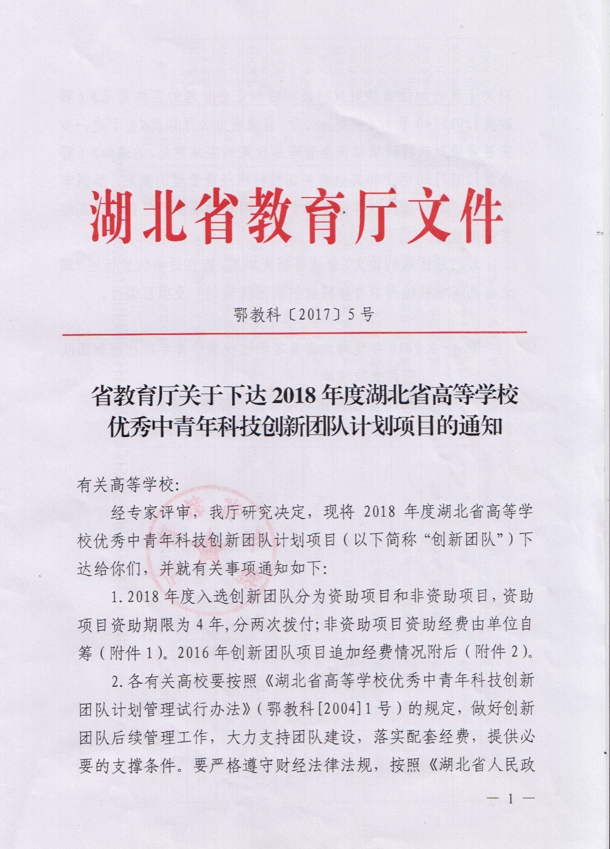 湖北省高等学校优秀中青年科技创新团队