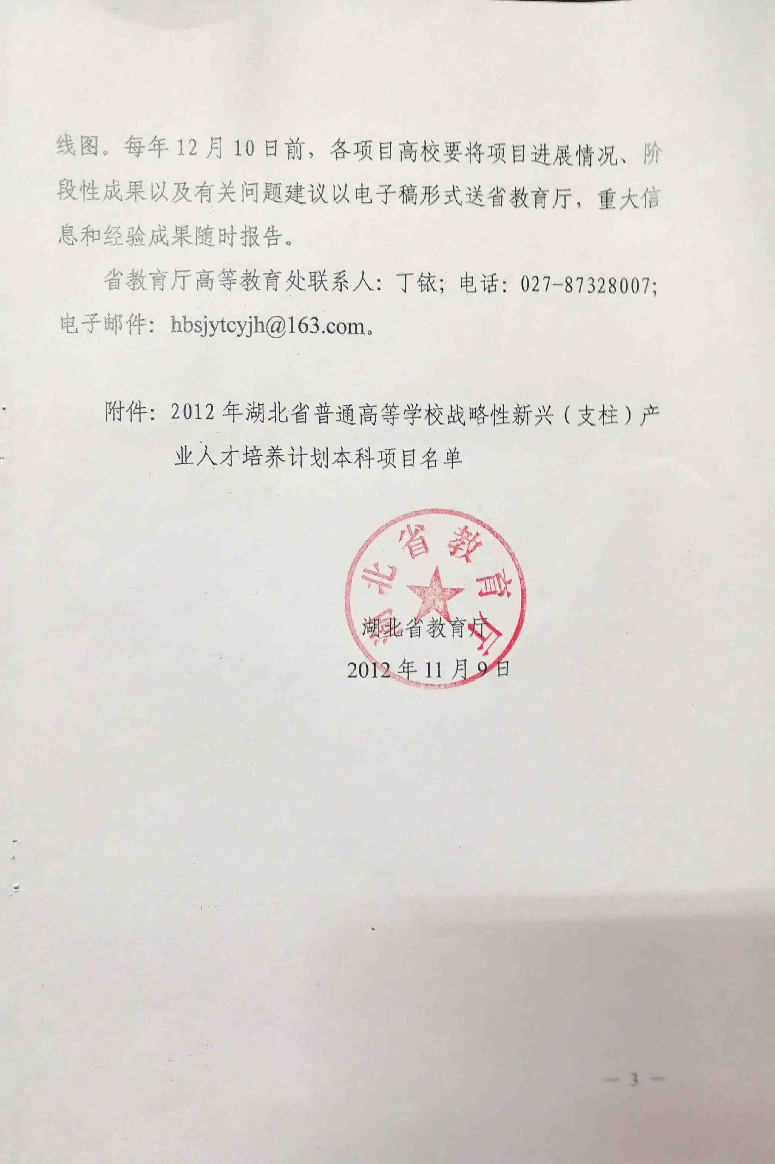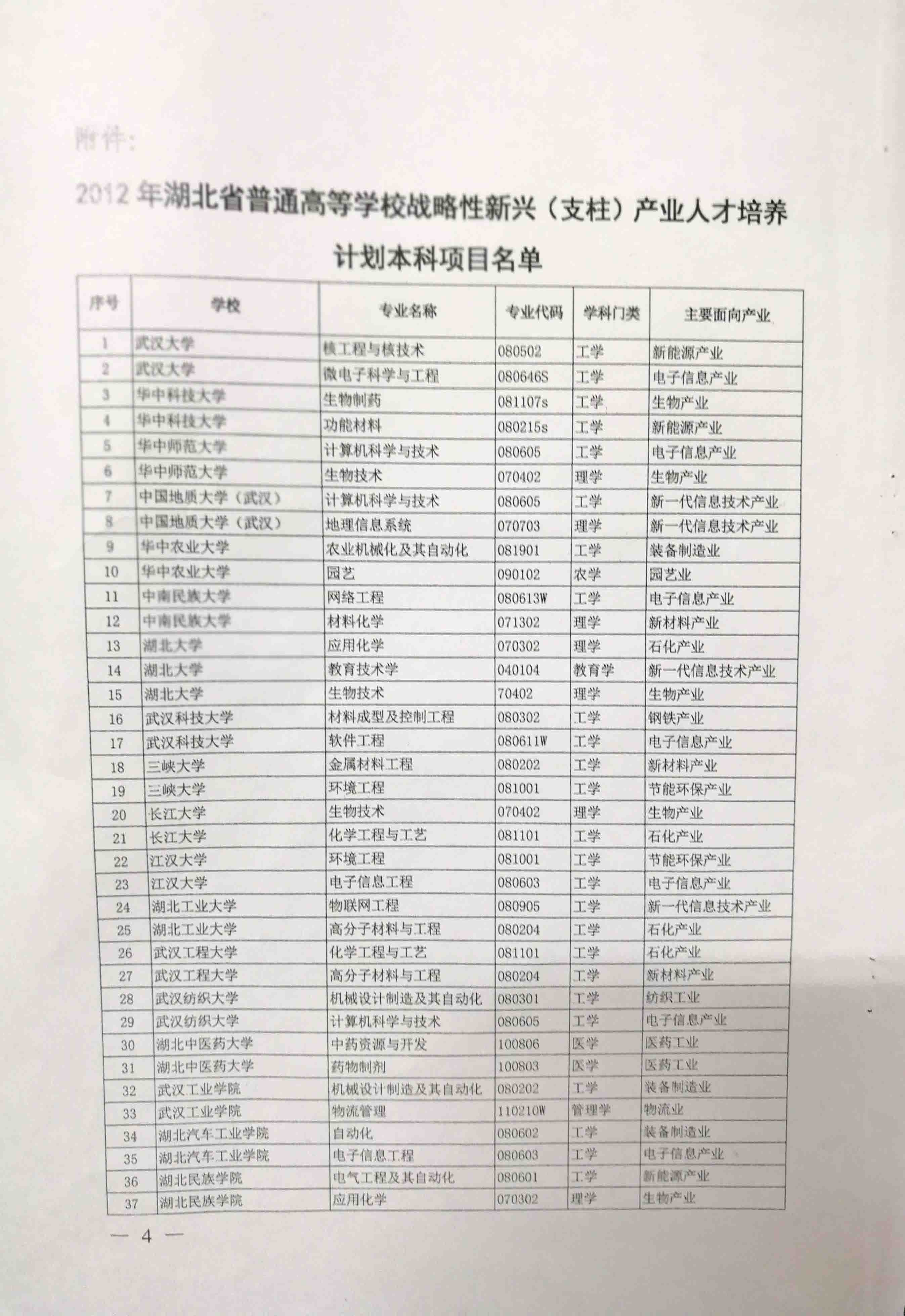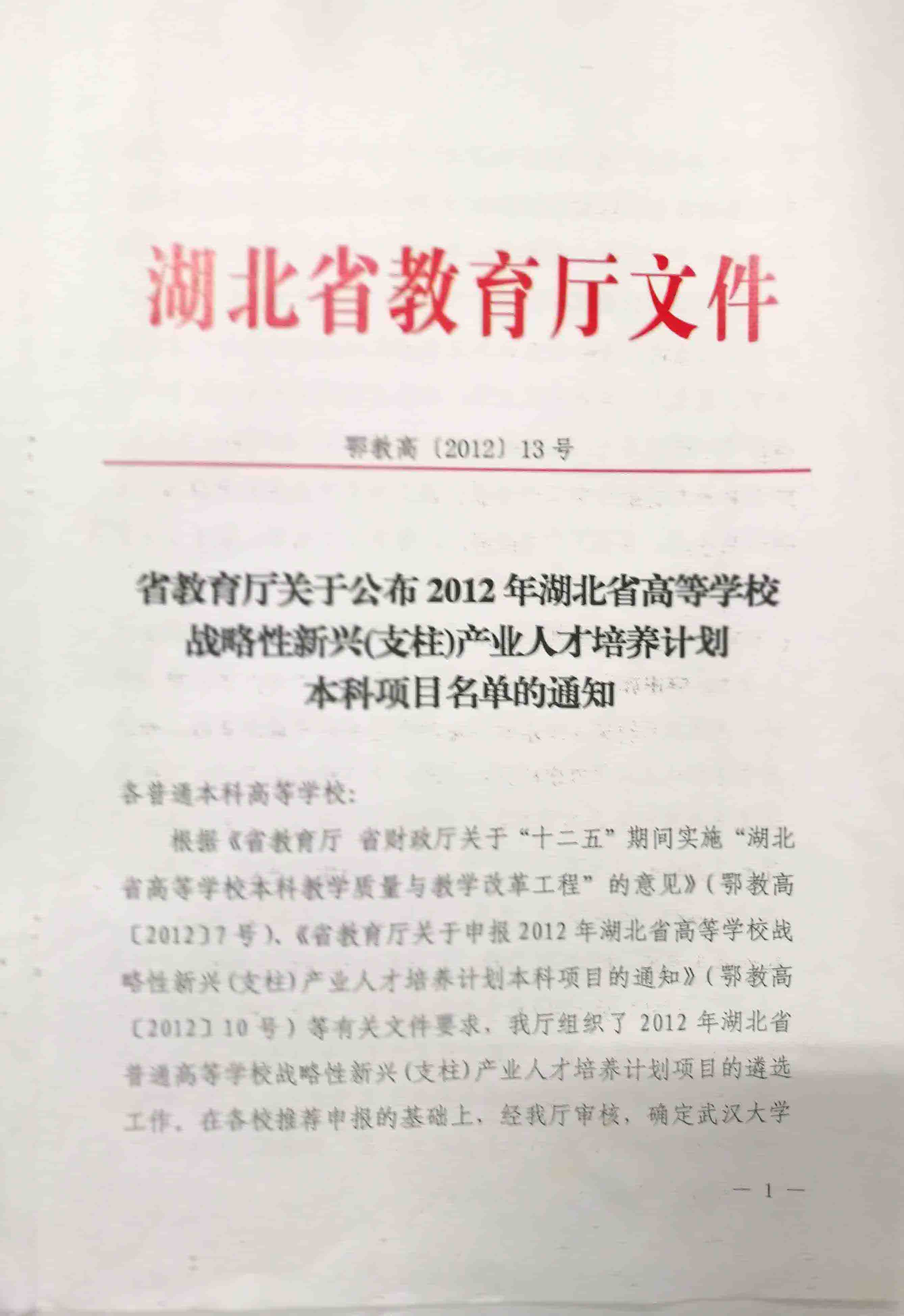 湖北省高等学校战略性新兴(支柱)产业人才培养计划本科项目——软件工程