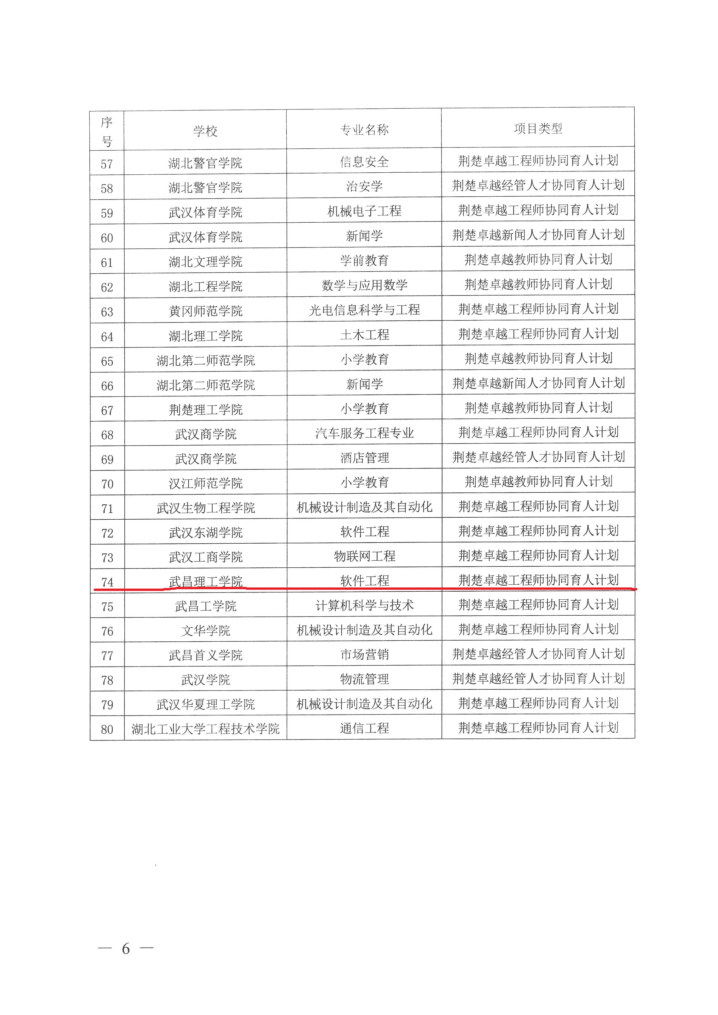 湖北省普通本科高校“荆楚卓越人才”协同育人计划项目——软件工程