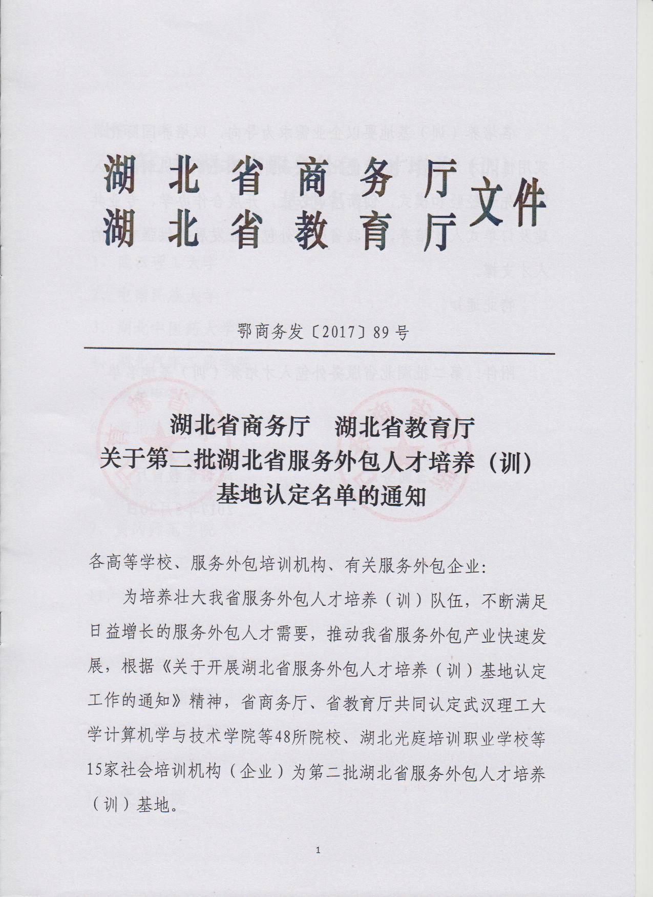 湖北省服务外包人才培养(训)基地——计算机科学与技术