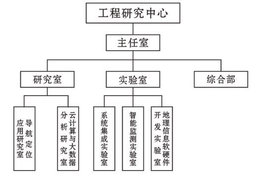 工程研究中心下设1个综合部, 导航定位应用、云计算大数据分析2个研究室,系统集成、智能监测、地理信息软硬件开发等3个实验。